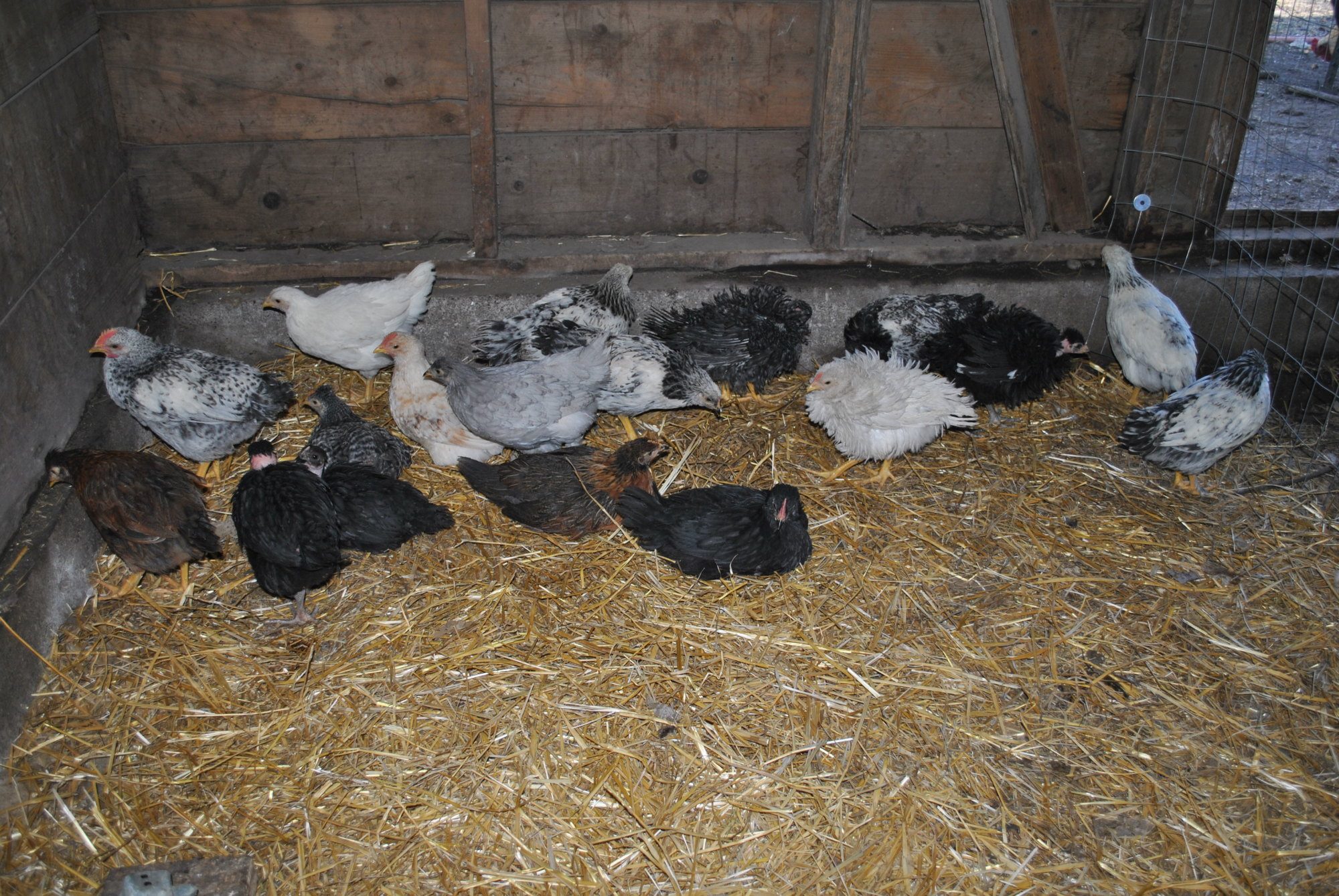 Here are some pictures of a few of my other mixed breeds. They were hatched in March (the photos are a couple weeks old. I need to get some updated ones) Ive got some frizzles, Turkens, Cochins, EE's and this one that has no tail! I think possibly from one of my hens that that were White Ameracauna/crested creamlegbar with my cochin roo. I am guessing a stray gene from the hens...