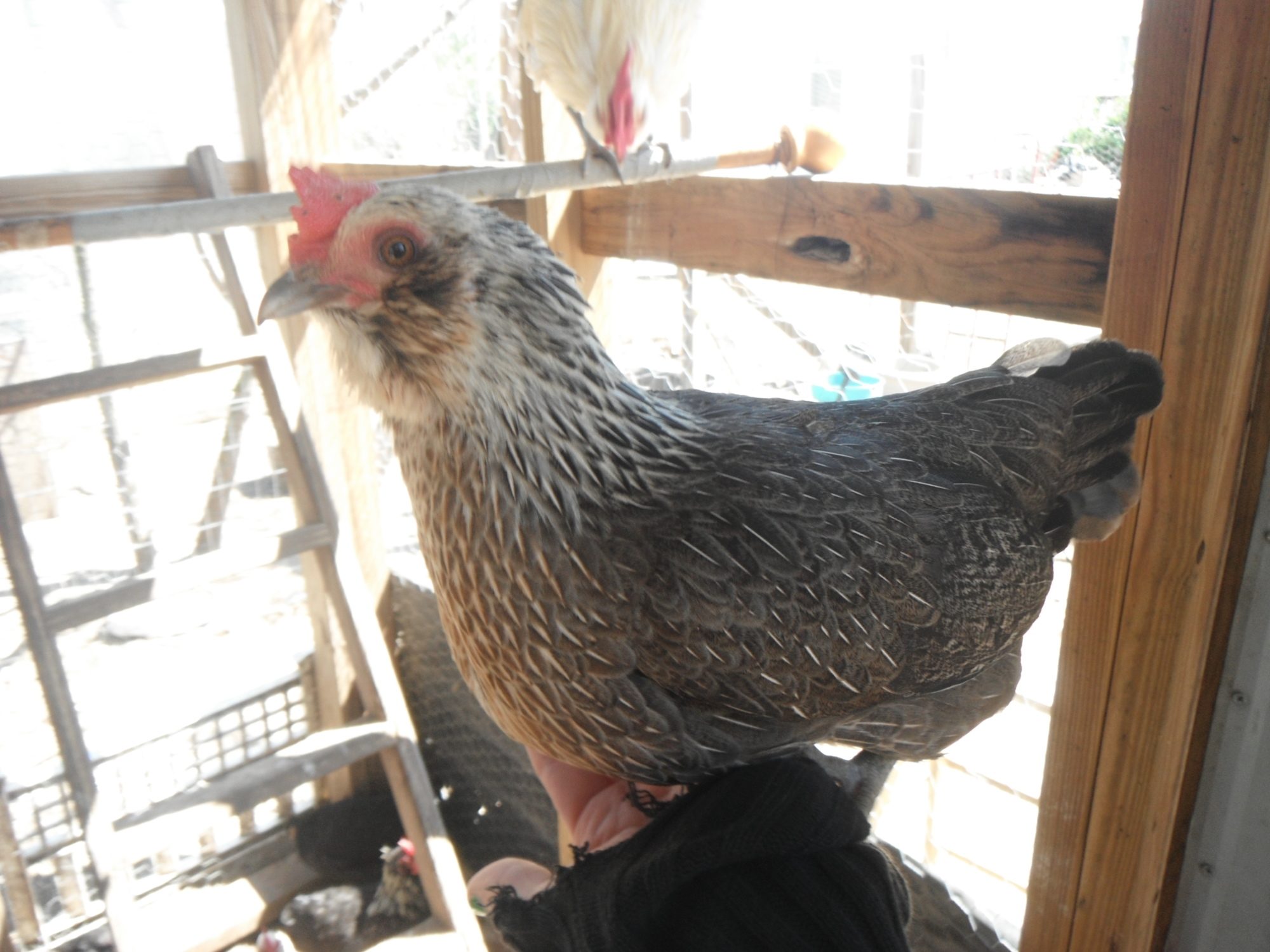 Thanks Megan, I love writing as well!!I love it Luke! You really have a thing for writing! I was entertained the whole way through both this post and in the one about your rooster on CPOW! I love all your names,so creative! And those pictures are super cute! The marans are pretty rare over here to, at least in S.C. but I don't know how much they cost. Most of my chickens don't have names. There is Texas Spitfire and she hates me, lol, so much it's funny. She thinks I'm the reason her eggs didn't hatch. Trust me I'm not! And then there is Tiny, a little yellowish white bantam that dad and I assisted hatch and she was "born" seemingly premature, even though she had pipped and it was about a week late! So anyway she was hatched with her eyes still closed and she was soooo little we didn't think she'd make it, but she did, a very friendly chicken even to this day! And then there is Ding and Dong, sadly Dong is dead. But Ding his sister is alive and well. As chicks Ding and Dong were born to a first time broody mother that decided she didn't want any babies after all so we took the chicks and you know who adopted them? Well, Tiny the Chicken did! At only a few weeks old she decided to be a momma and she would tuck them under her and feed them like she hatched them herself! Ding and Tiny are still bestest friends! And then there's Raven a black bantam hen that turns white speckled every time I separate her from her chicks! No matter how old they are until she hatches another one she stays spotted! It's happened twice now, lol! And then let's see who else.....OH YEAH! I can't believe I almost forgot about Peggy and Gorilla! So MPeggy is another BEAUTIFUL bantam hen, at least in my eyes she is, that became oh so friendly the first time everyone went broody. I don't know why, she didn't go broody just got real nice, would talk to us and fly up and land on us. Still is friendly, likes to be pet. And Gorilla is my favorite chicken of them all! He is a black Silkie and what's funny about him is that he loves to raise chicks! I have actually given him orphans before and he looks after them and gives them food, even makes the same sound a momma does! When there old and I take them off the ground to move into the hen house poor Gorilla get's so sad! So I always try to have some baby down there with him. The other funny thing is he can't see to well and will run into the tree, the wall, the fence, your leg, anything! But if one of his "kids" squeezes out of the gate.....boy does he go flying over and start scolding them to come back! I don't know how he sees that! So I have pictures of some of these guys, but not all of them.