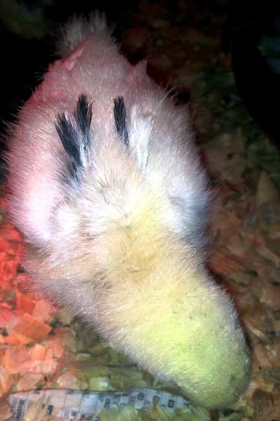 *the ROO was DEFINATELY a Pure Jersey giant...there were 2 possibilities of the mommy - 1 being barred rocks & prod. reds. Out of those 6 eggs I got 3 totally Whitish/Blonde chicks, & 3 mostly Black chicks; so I was a bit surprised!!!, I'm assuming the blonde ones are from the Prod. reds & the black ones are from the Barred rocks...