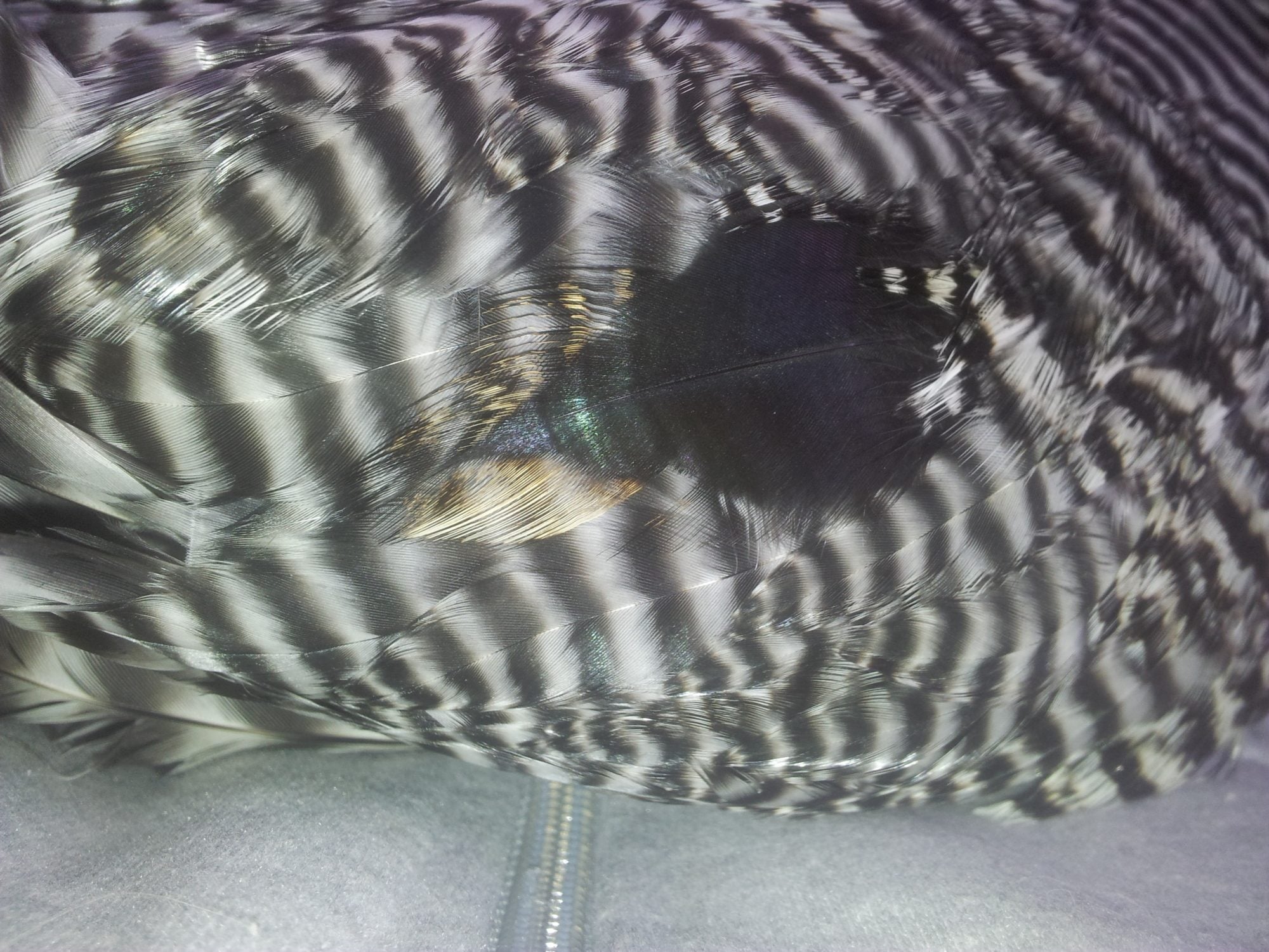 I think my barred rock may have something else in him from somewhere along the line. He has just a couple feathers, both on his wings I think that are black and brown. Really stands out.