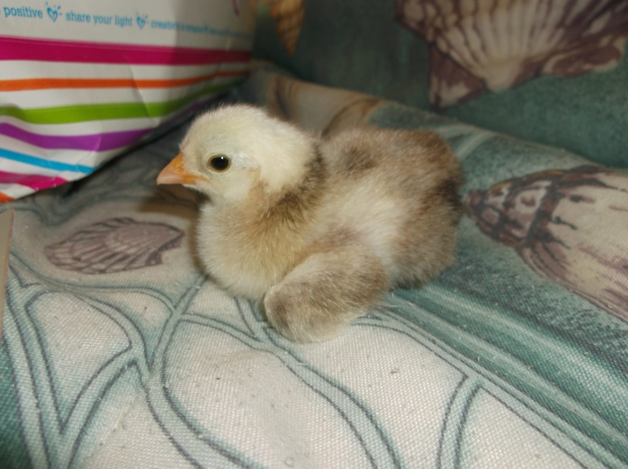 It's a perplexing color, but seems a bit like wheaten with recessive white showing through the chick down. That's just my imagination working overtime.