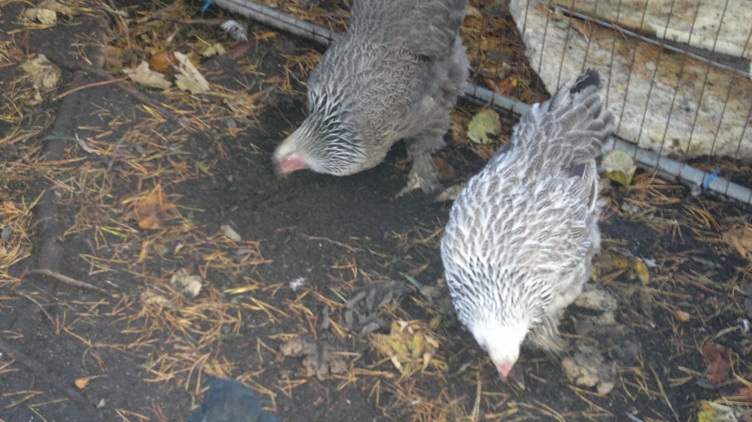 The hen on the right is the one im going to pair with my cockoo x brahma cross rooster. See how badly marked and washed out she is, Im hoping thatll mean the roosters colour will carry over into the chicks