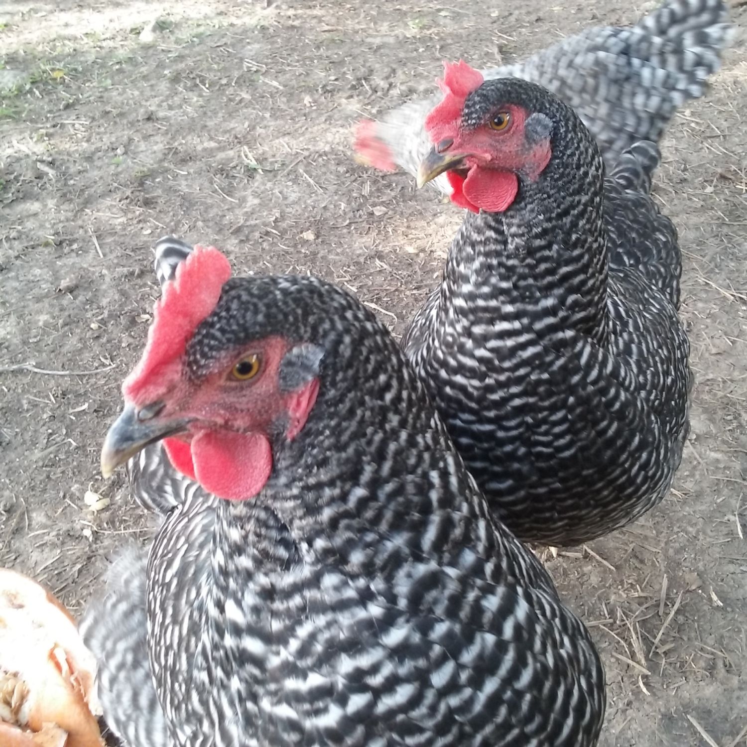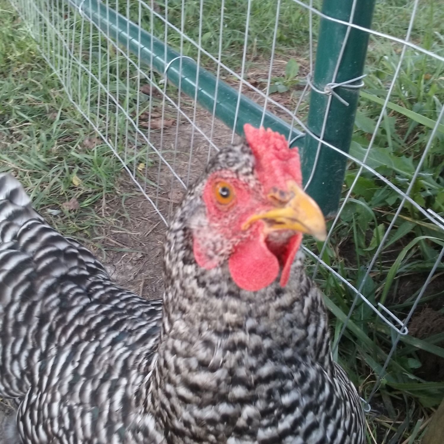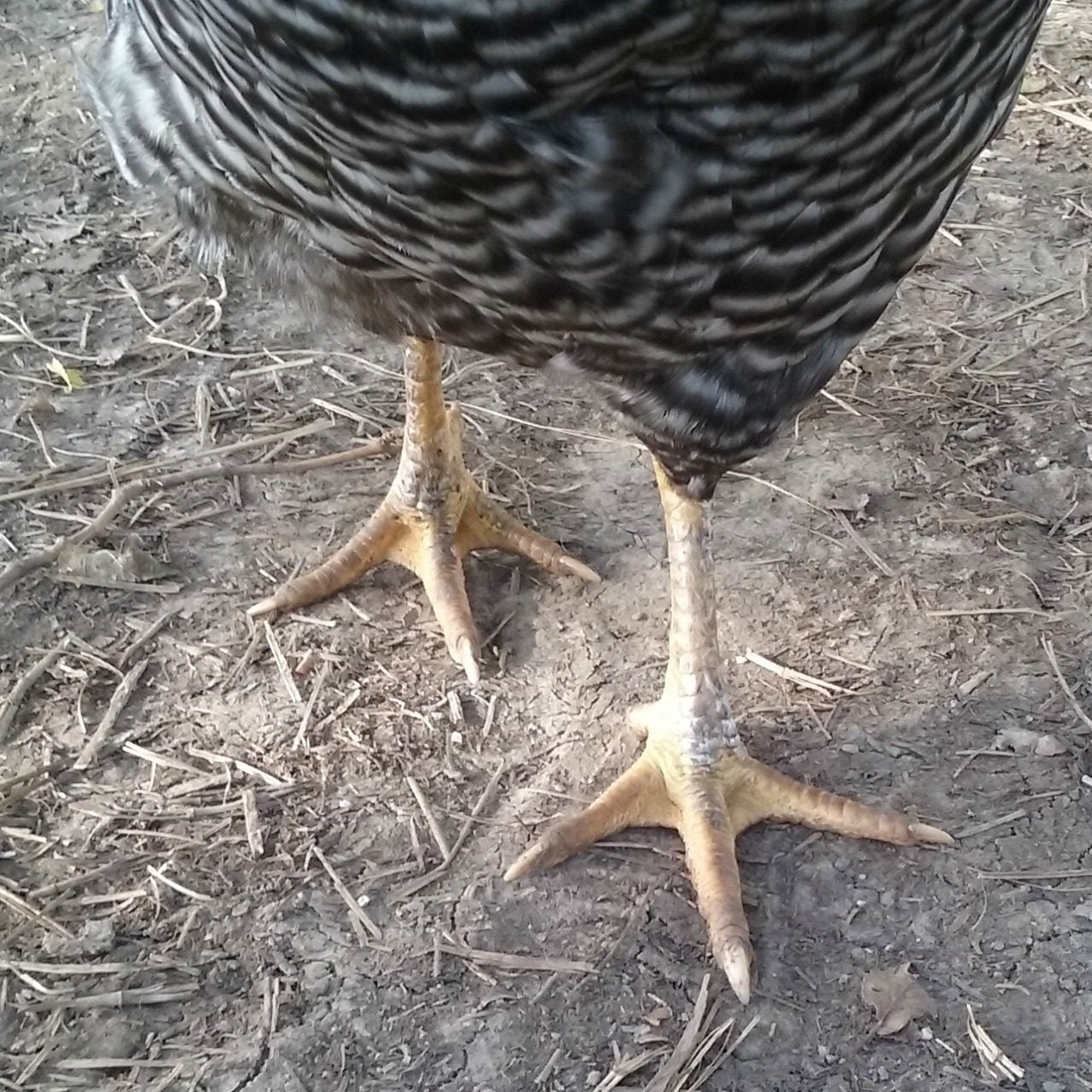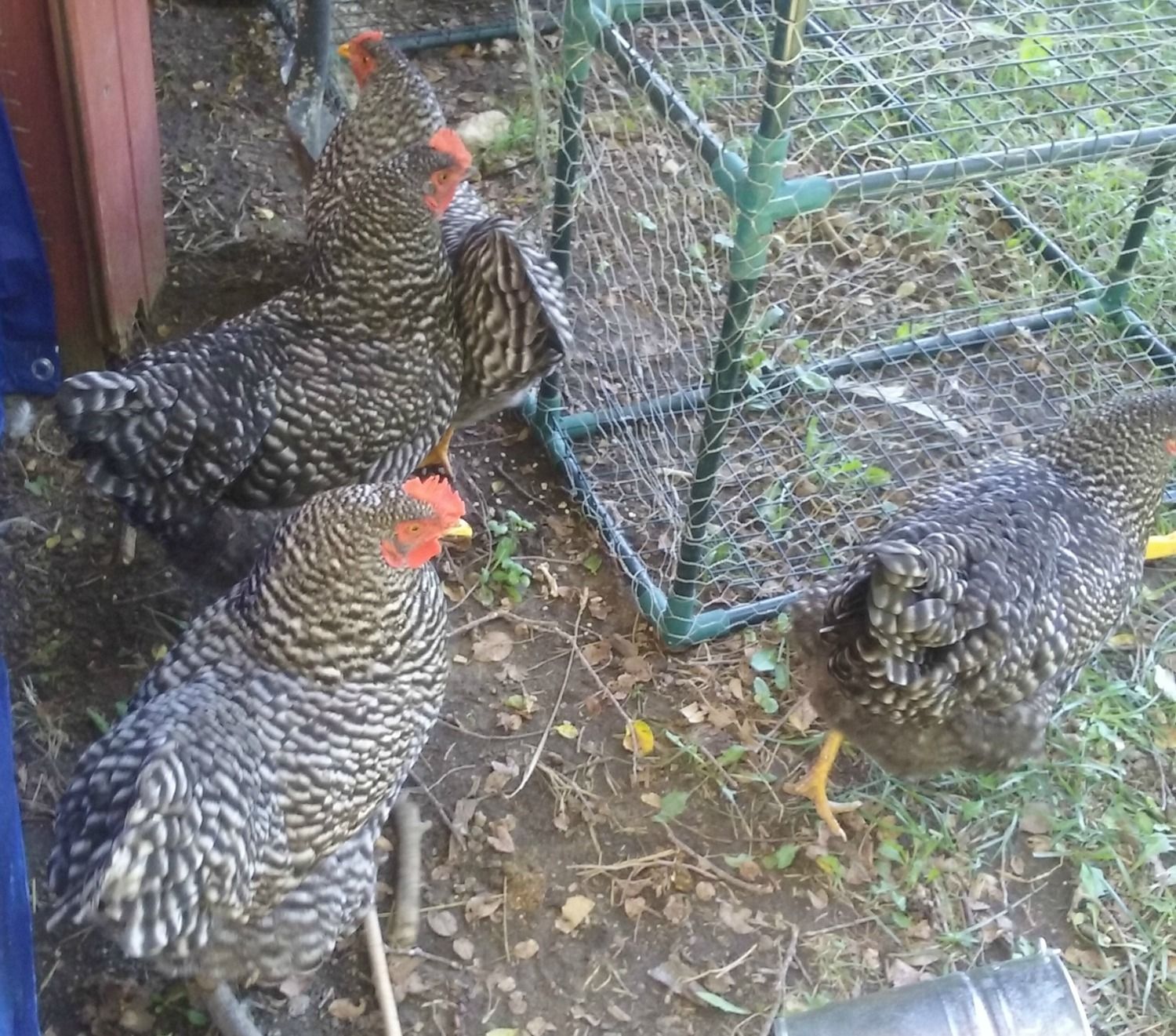 I got these girls a few months ago, the breeder said 3 of them were cuckoo marans and 1 was a barred rock. i'm pretty sure the one with the tiny comb is the barred rock but there's another girl that looks very similar to her but with a larger comb, 2 are darker, they all seem to have at least semi yellow legs..i just can't tell. These pics bite, it is very hard to get pix of these girls but i can try for better ones. They just started laying, at least one of them lays a lighter egg than the others