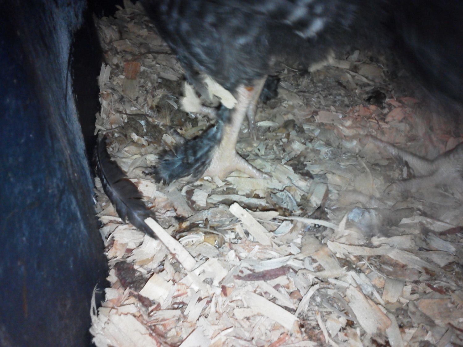 the cockerel is in the front (yours look a lot like these just with the cuckoo pattern) and the pullet is in the back (these are barred rocks but pure barred and cuckoo birds feather out the same way cockerels vibrant pullets dull)