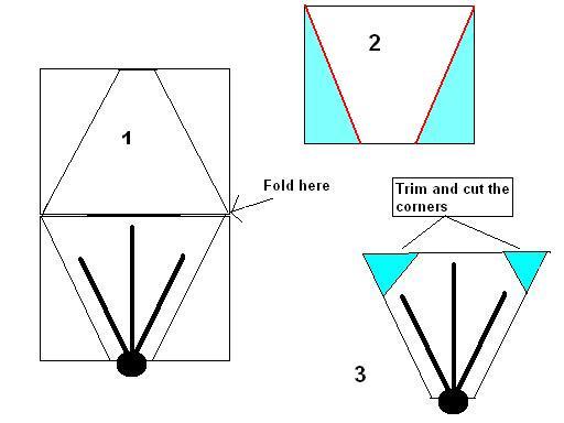 To start and make the cast more uniform and perfect, (fig 1) cut a rectangle the width of the foot and then fold it in half (before removing and exposing the sticky (figs 1 and 2 in the image). Then (in fig 2) cut the red line to trim away the blue. When you unfold you will have the diamond as shown in fig 1 as well as a natural fold.