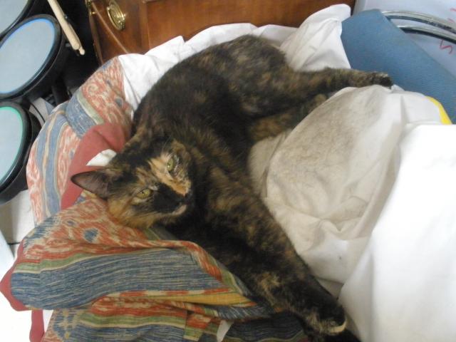 This is Lexi who is also a female tortie who is about 2 years old. We also adopted her when we saw her at the petsmart adoption with her orange tabby brother Thomas, who died from a scorpion last year
