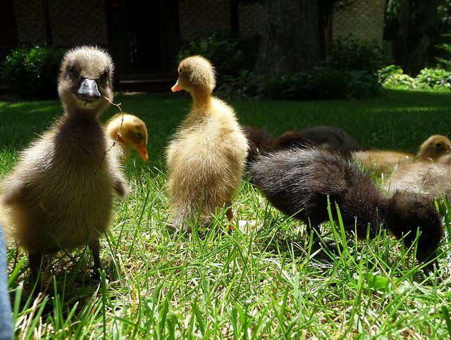 After drooling over everybody else's ducklings and goslings this year, I decided to sneak an order into Holderread's before it was too late. Just received the ducklings on Thurs, and they are growing like weeds! I actually got a shot of two of them "striking a pose", so I thought I would show them off!!