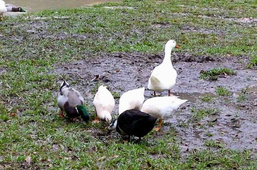 The ducks doing what they love best....tearing up the mud puddles in the yard after a heavy rain......
