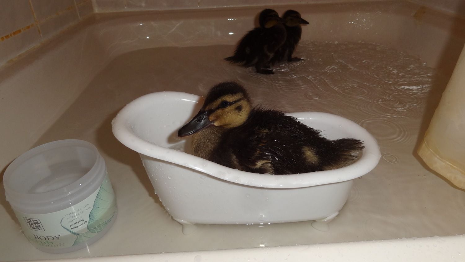 Oh, goodness. This is extremely cute. In a tiny tub. That's in a large tub.