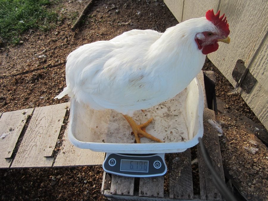 Here is a Pioneer cockerel at 9 weeks. The typical cockerel weight is somewhere between 4 and 4.5 lbs.