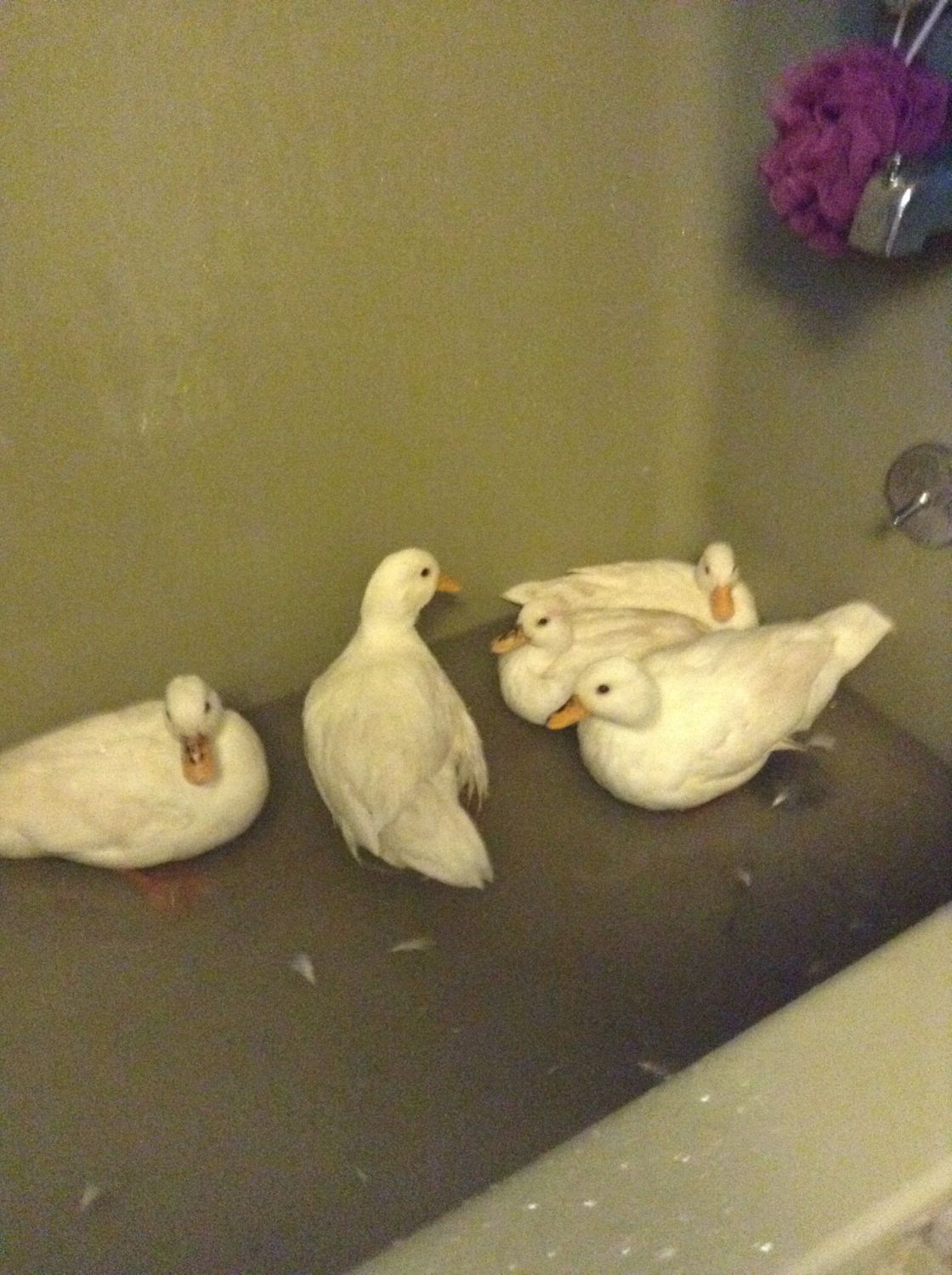 When we got them home, one slipped out of my hands and ran out the garage door. The dogs started chasing her and she FLEW AWAY. I started running after her screaming and bawling like a maniac with no shoes on through the neighbors (that don't particularly like us, they have 9 huskies but that's a different story for a different time) yards. I crashed an outside family dinner of neighbors I've never met. So eventually we gave up looking, my dad leaves to go groundhog hunting and calls and says she's in the neighbor's yard the opposite direction which she flew. We surrounded her, I dove at her with a fishing net, she started to fly, and my dad does this literal NINJA DIVE, CATCHES HER IN THE AIR, and hits the ground (but didn't hurt the duck). It was the most amazing catch I've ever seen, football games included.