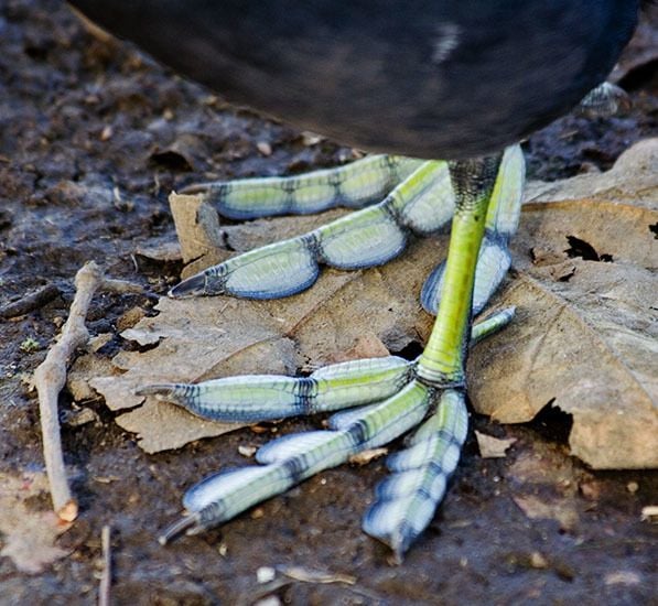 whoa, Kathy. That is incredible. I have never seen bird feets like that before. They are beautiful. He is a cute little bird. What is he? Is that your Muscovy in the puddle? Shes cute and round. That birds toes are not like toes ive ever seen. Theyre obviously shaped that way for some reason. Thanks for bringing him to my attention.