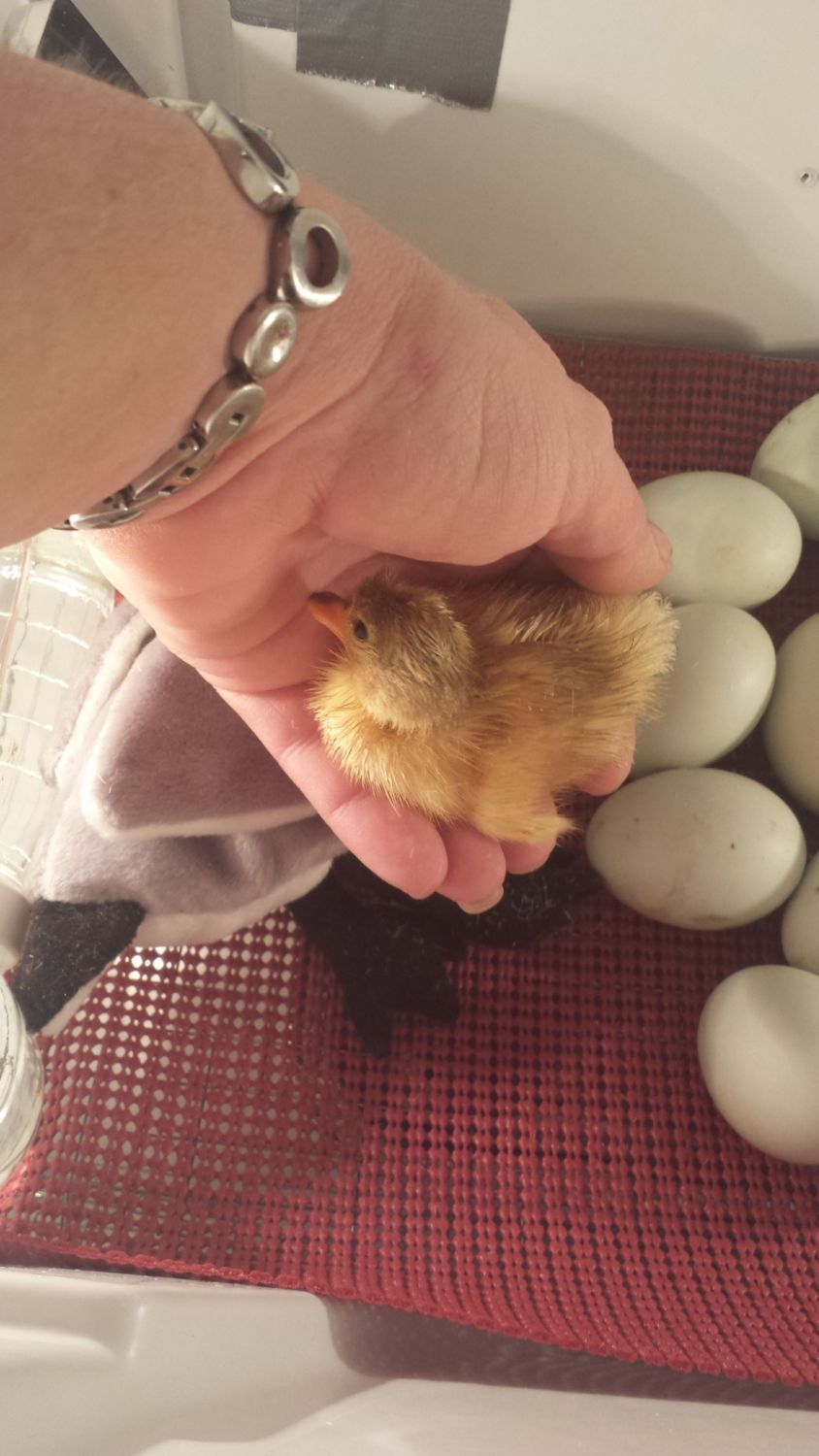 My beautiful new call baby. Hatched her on Wednesday. Have 16 more due next Saturday
