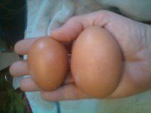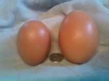 I've seen some pretty good sized eggs out of my 18 month Orps but this monster out of a 8 mo CCM hen just blew me away. Egg on left is a good size at 1.9oz the monster weighs in at 3.3!