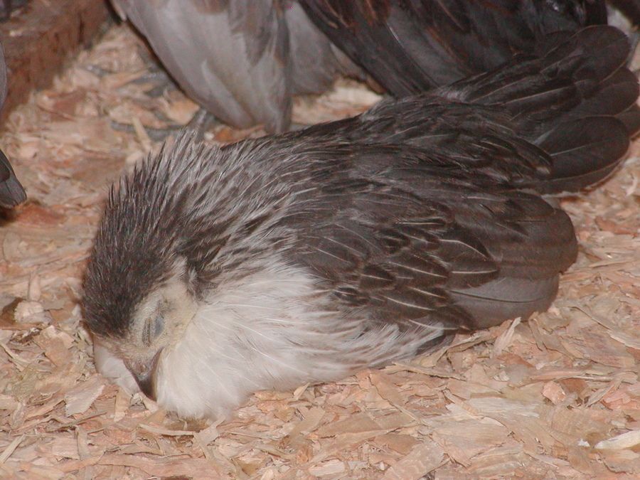 And one of my Blue Silver Quail pullets fast asleep...
