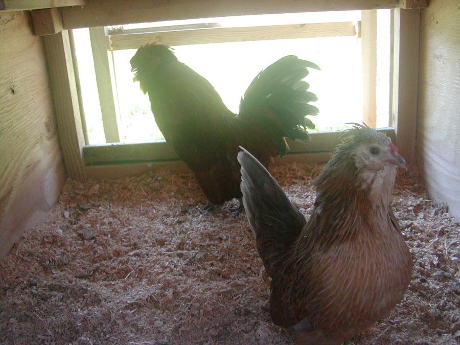 Here he is behind the black pullet...