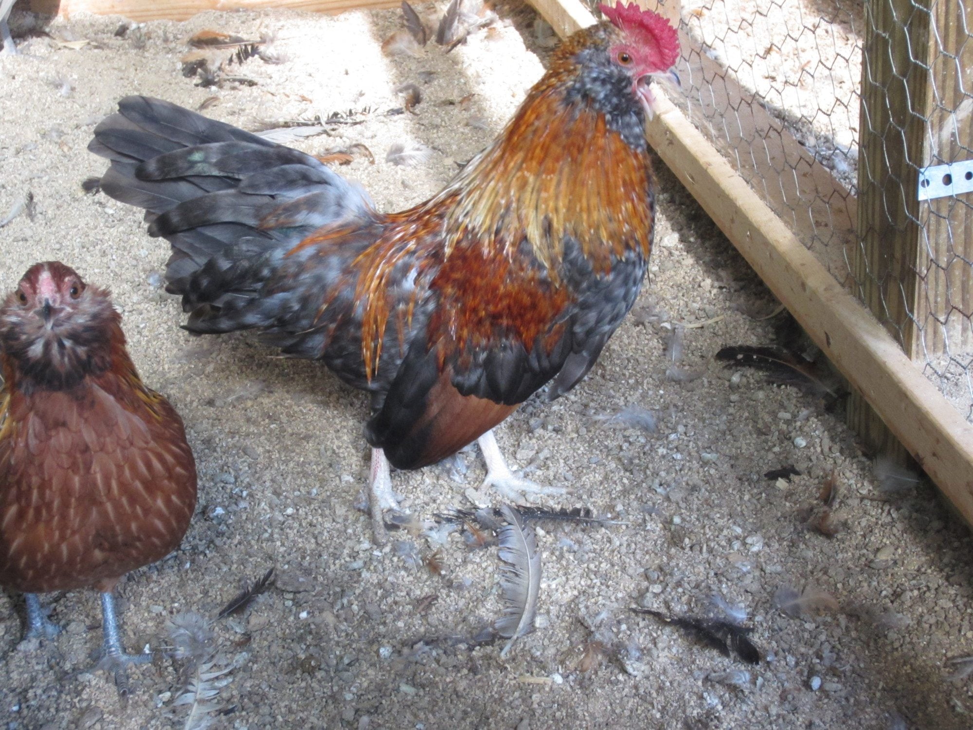 After two weeks of no letting up in attacking them I decided to remove the problem birds, so I took out the boy, the blue aggressive hen, and a placid hen who at that time was the only one to have come into lay so I wanted her to stay with the boy.