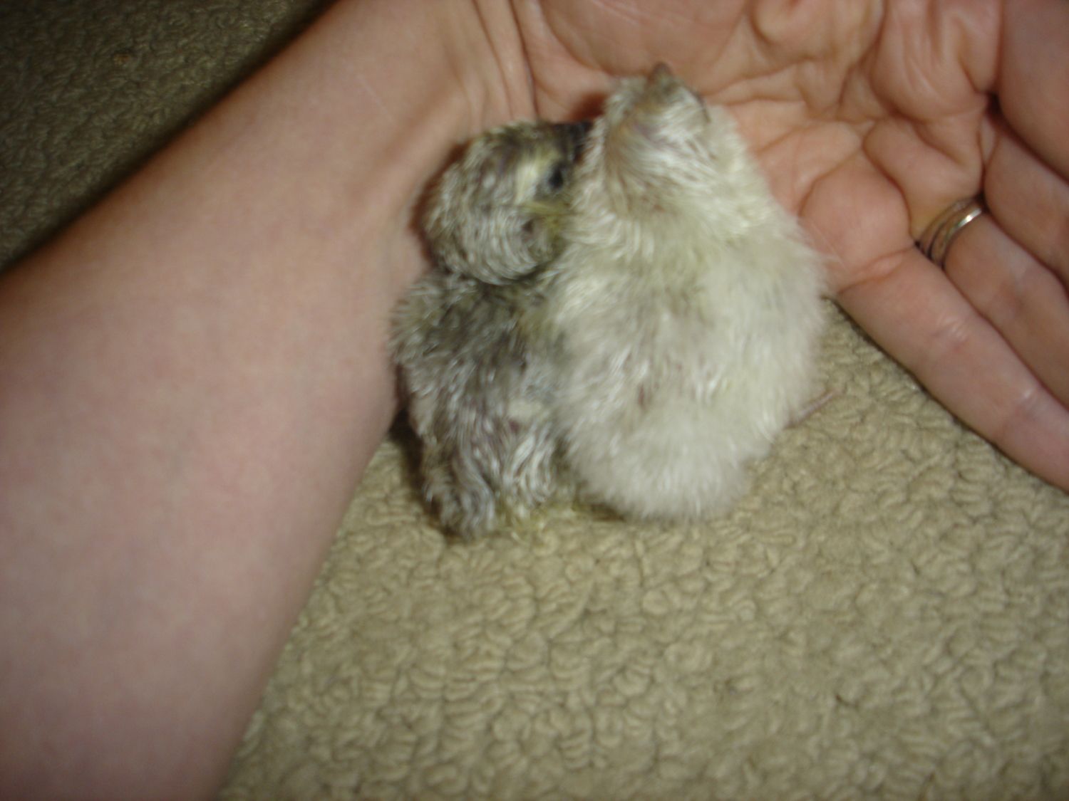They came out of a mixed pen with Blacks, lavenders, white, porcelain, and blue...soooo who knows! :) My first batch ever. All four are out now. I will get some more fluffed up pics tomorrow.