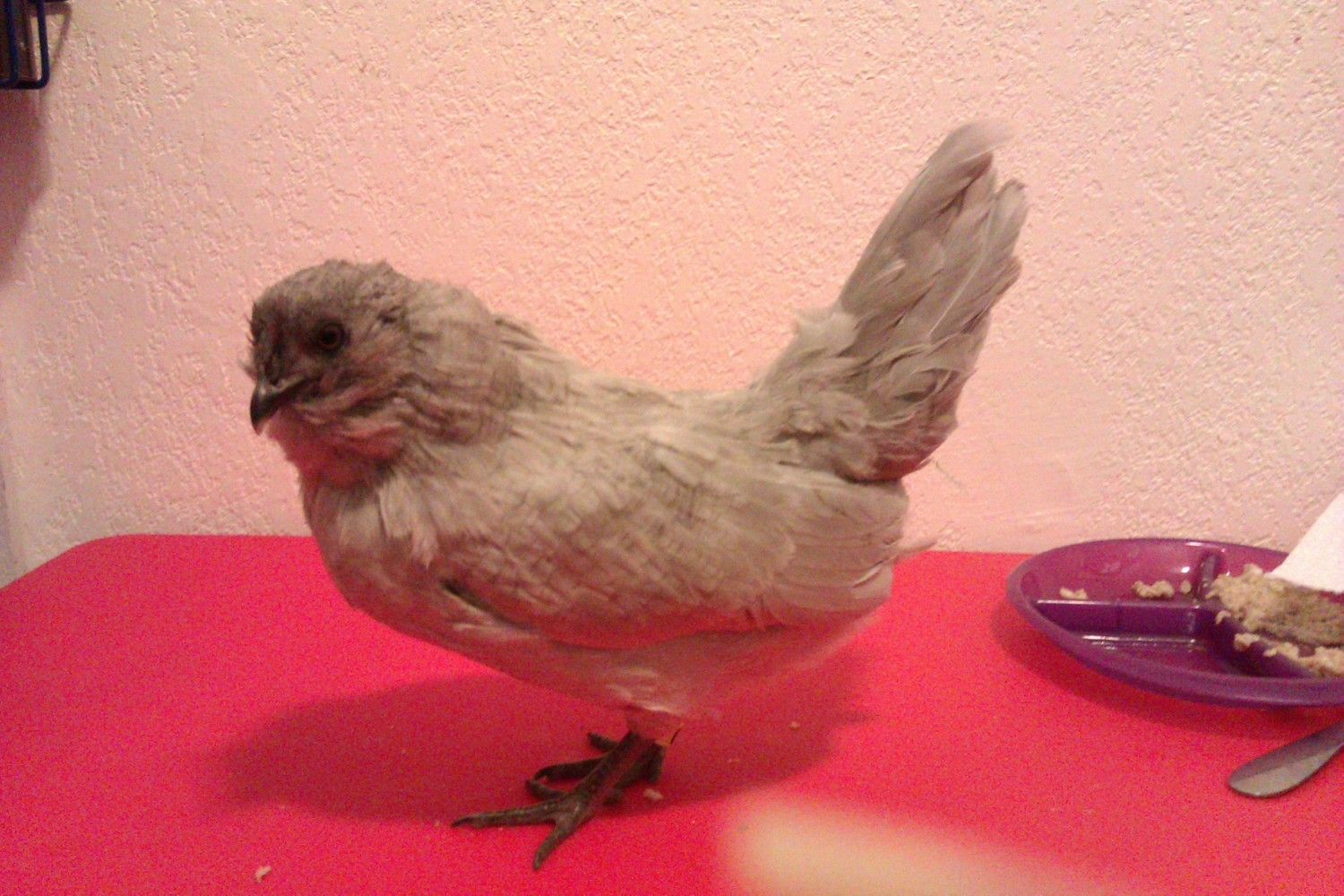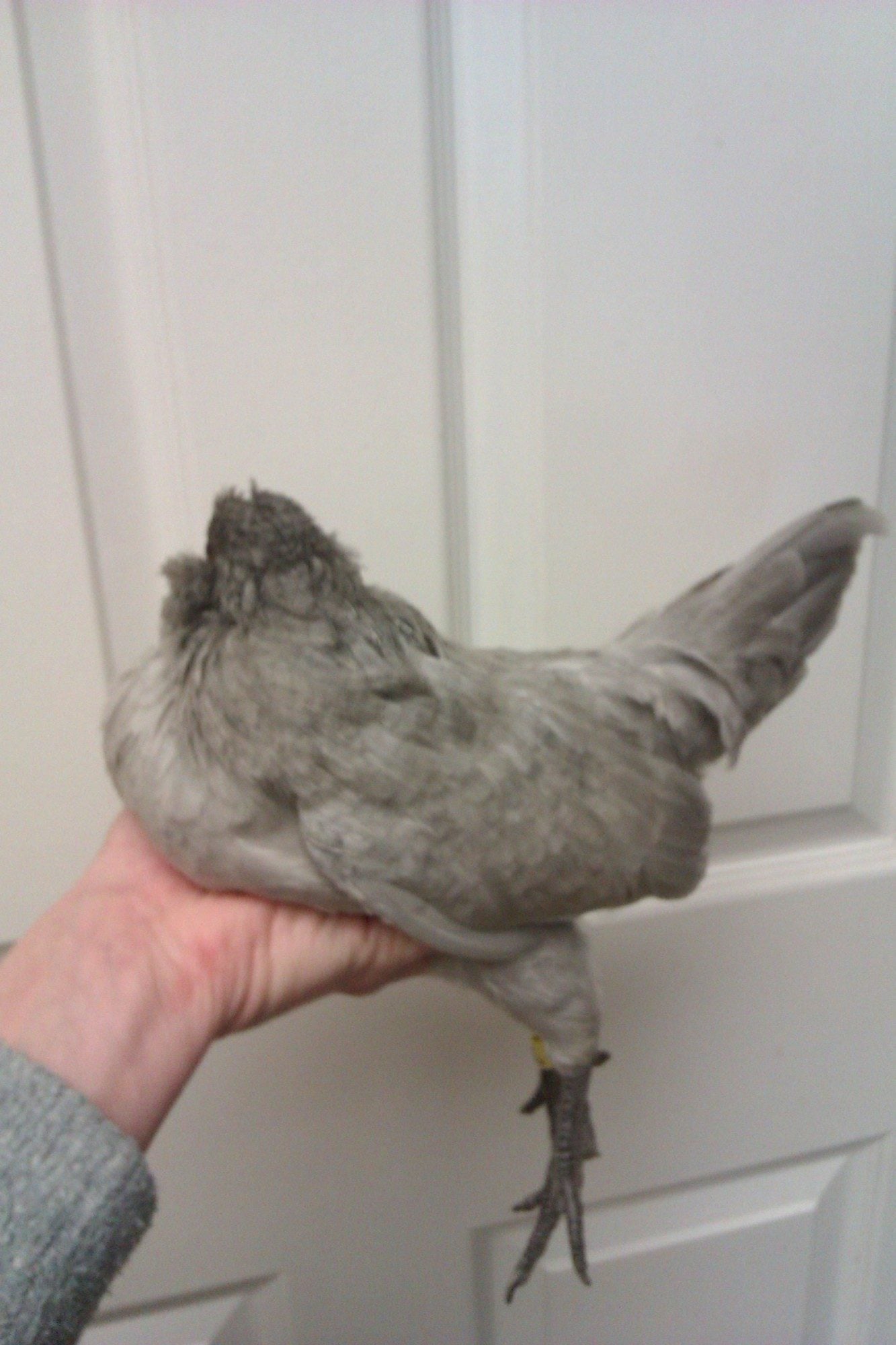 Her over all feathering doesnt look really smooth. Looks kinda hard feathered, though you get that a lot in that color. It has something to do with a feathering flaw in it, so get that way some stay nice and smooth, seen it in mine too. Then again she could just be a little ruffled from being held is all.