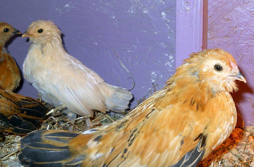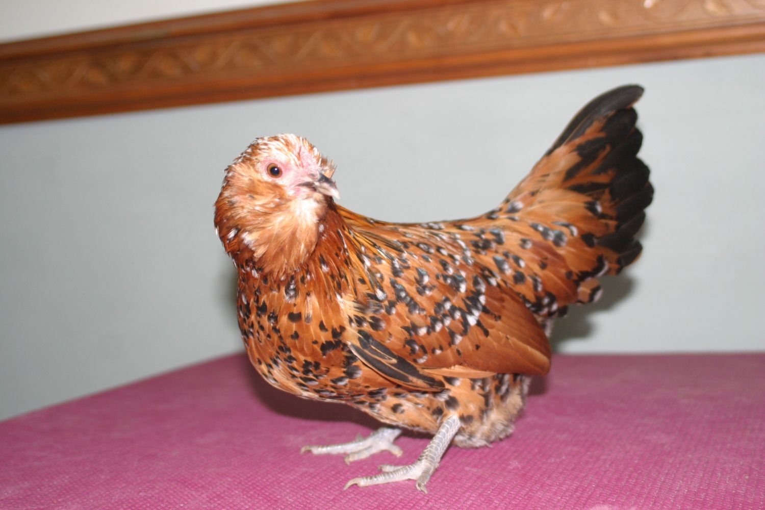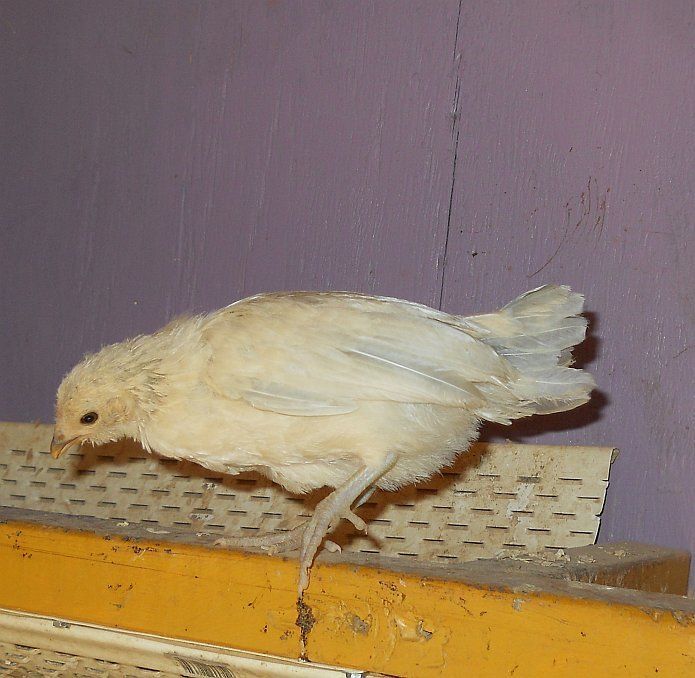 she had this huge lump under her left wing, I am thinking abscess, anyway, now the lump is smaller, but she really isnt able to walk. She has been up in the house for 10days, other then her lump, I thought she was egg bound originally.So I have no idea if she will make it at this point, but she is still eating, just not able to really walk, she hobbles and kinda walks on her wings for balance.SO cute. Well that little one of mine definitly doesnt look like any of them. It will be really interesting to see what I get, now I cant wait to see it feather out. It looks so muich like a yellow chick with just some striping. Maybe I should take weekly pics of that little one