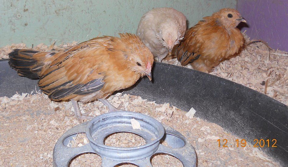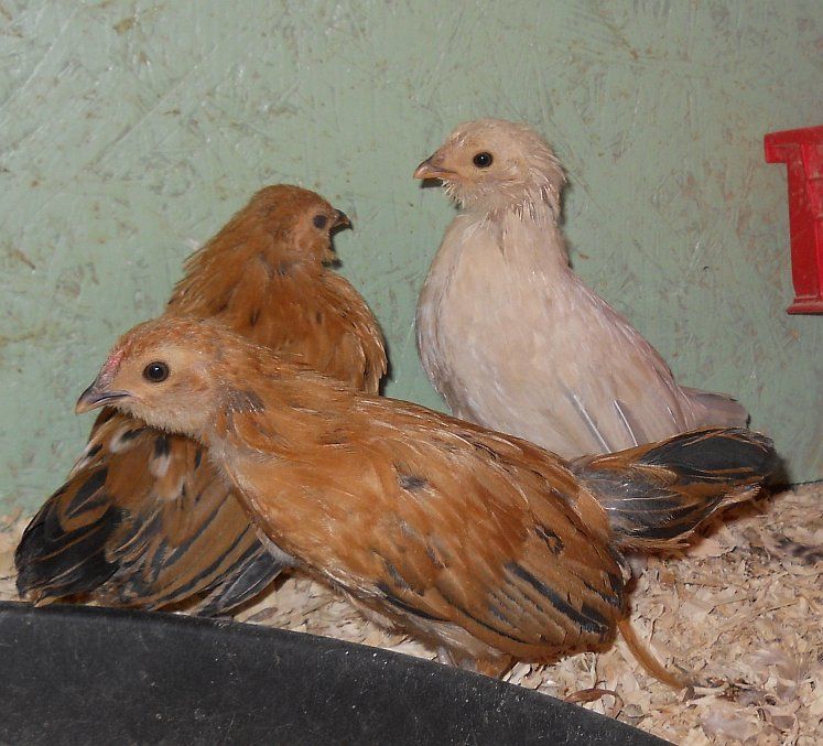 Hmm, thats what I thought at first, that the 2 darker ones were millie, then I went back to the chick pictures Aubrey posted a long time ago, and they dont have any striping, just solid grey backs, so thats why I thought porcelain. I dont remember mine it seems so long ago. So the 3rd one has me really at a loss. Cant wait to hear from Aubrey on that one.The two dark ones are going to be millies, I will leave the other one to Aubrey. It almost has to be a golden neck but I have only seen one and it wasnt that "dirty" looking. I have had some mille chicks that were real light looking. out of the birds I have.