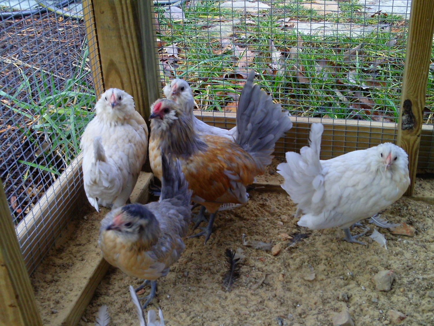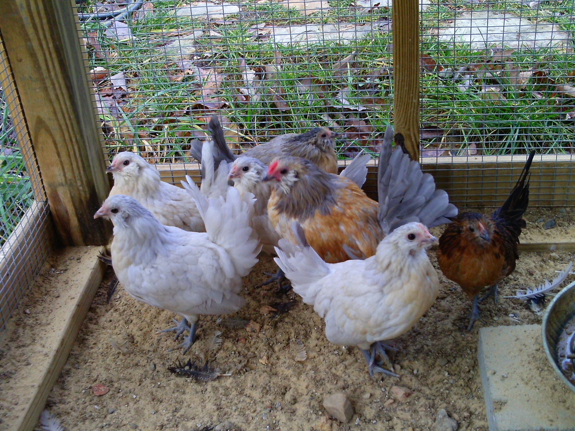 Thank you, JJ! You are probably right about the feedstore calling them "quail" because of lack of d'Anver knowledge. We're happy as long as they are d'anvers. It's weird though, in the last year I've searched local sources for Quail d'Anvers and can't find any quail. We'll see how they turn out and enjoy them. Here is a picture I snapped today showing all the peachy feathers growing in...I would say they are white d'Anvers. Quail is the most popular or numerous color so it is common for non-d"anver people to refer to the whole breed as Quail d'Anvers.