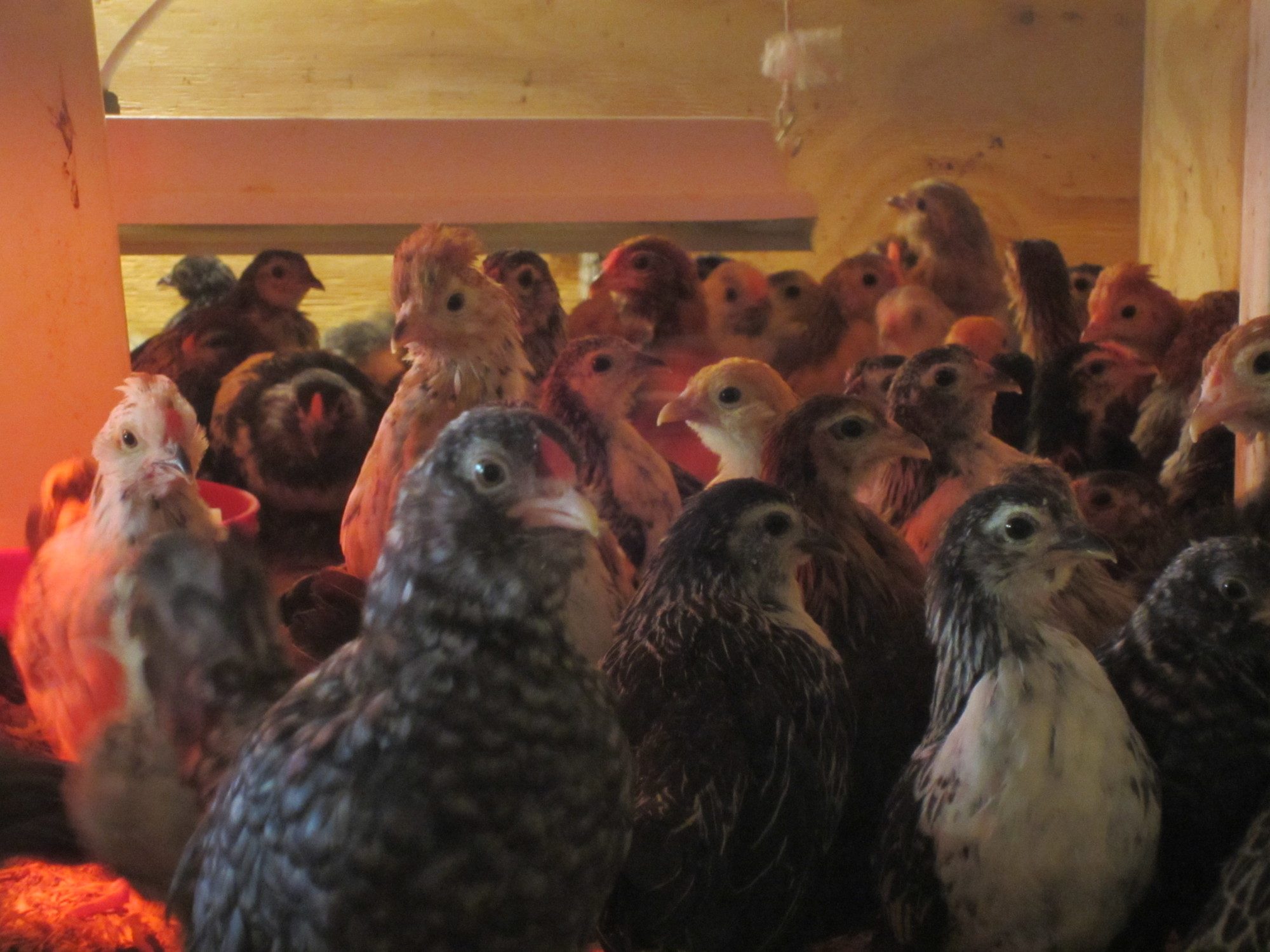 The teacher will be candling them today, I believe. Yesterday my fiance briefly held one of the eggs up to the light, and saw a dark area, which he says likely means a chick is growing in there. I so wish that I could be there to see them hatch. The reptile heat emitter brooder "light" arrived last night. Trying not to get too freaked out reading the horror stories in the Raising Baby Chicks section.