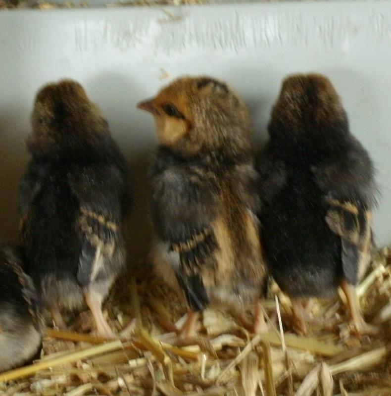 think I saw some pics on the next page, but mottling is recessive. so the darker quail you have may be dark because they too came from a quail to mille breeding. would explain the darker color and the mottling on these chicks. since the mottled pattern is recessivbe. It would not show up in the first cross. But when you breed those together 50% at least would come out mottled. so one way or the other, for it to come out, your dark quial are split for mottling sounds like