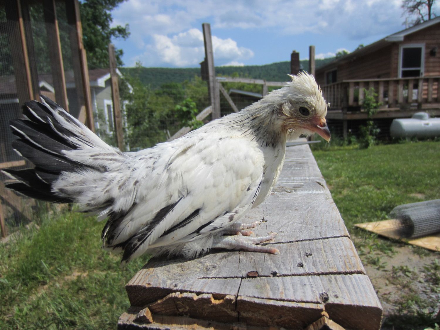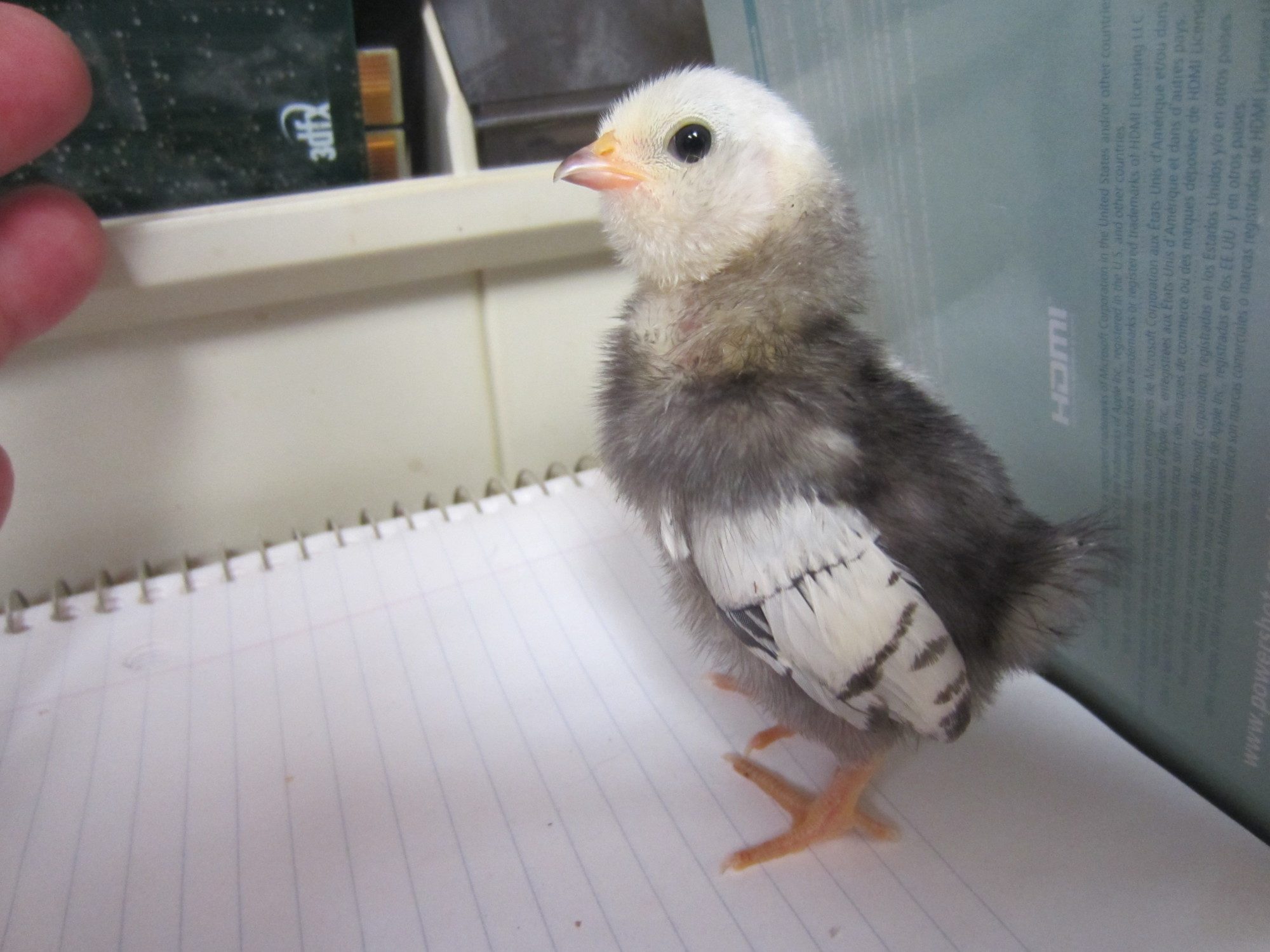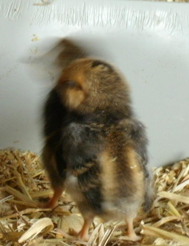 I am not sure what color this one will be. It is out of the silver laced project and looked like a silver quailish or Columbian chick but I haven't seen wings like this bebore.