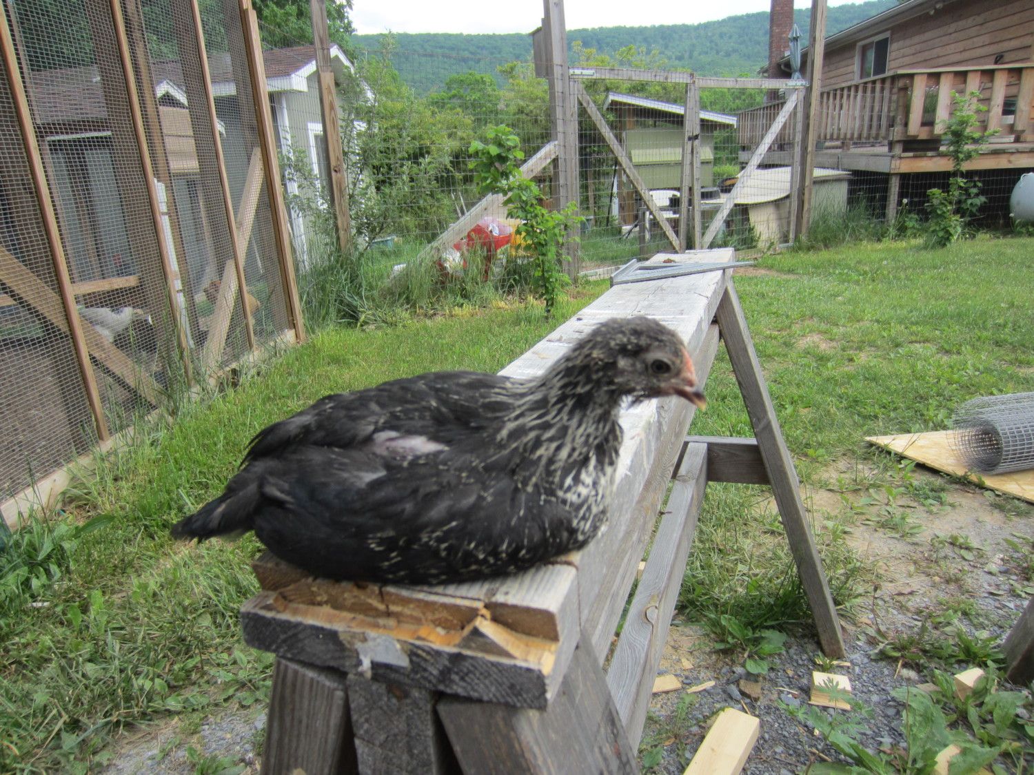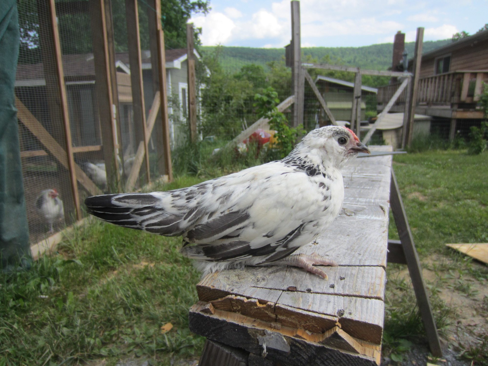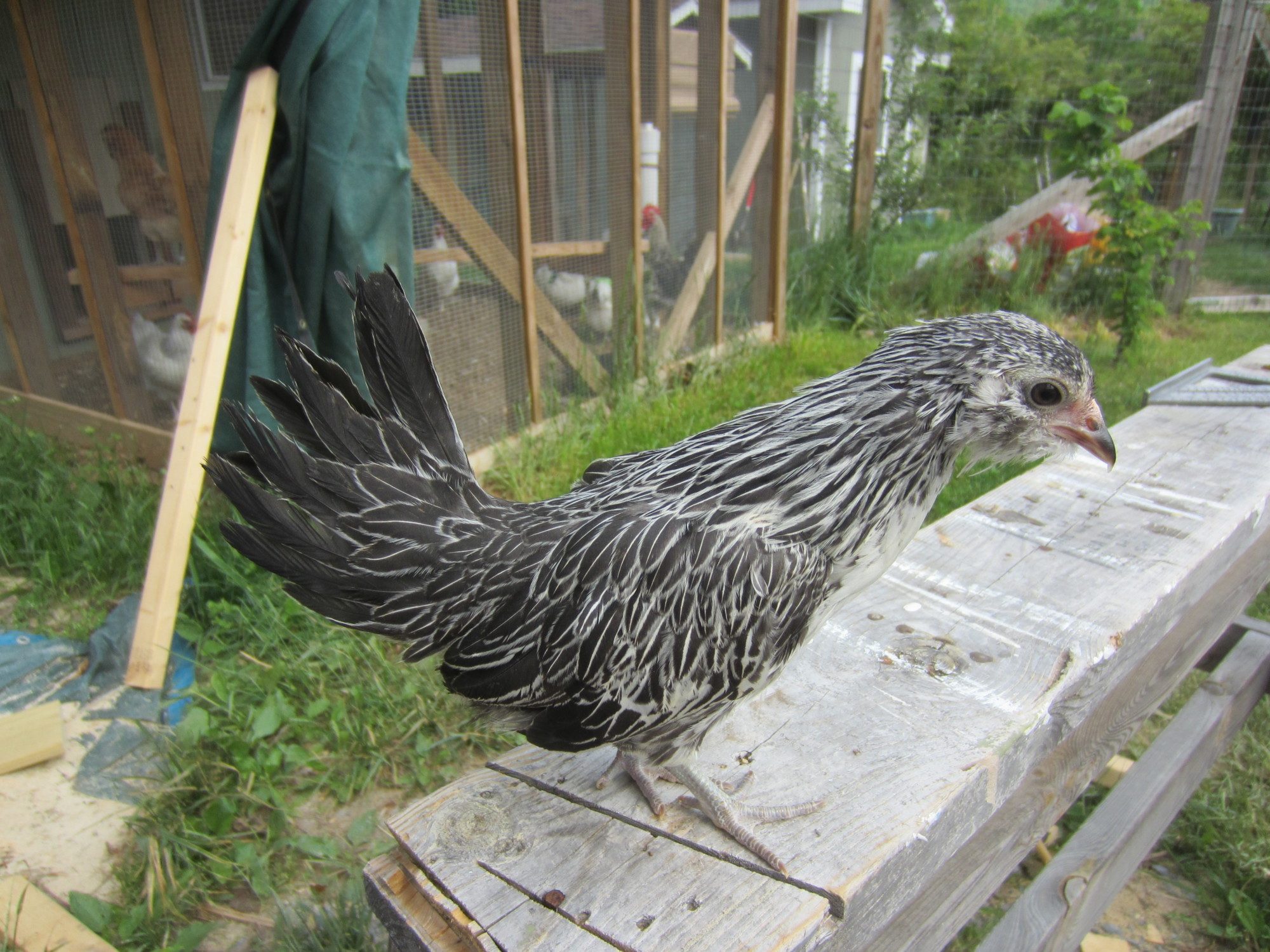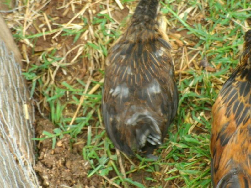 One pullet has tips on her tail feathers and several on her back and shoulders.