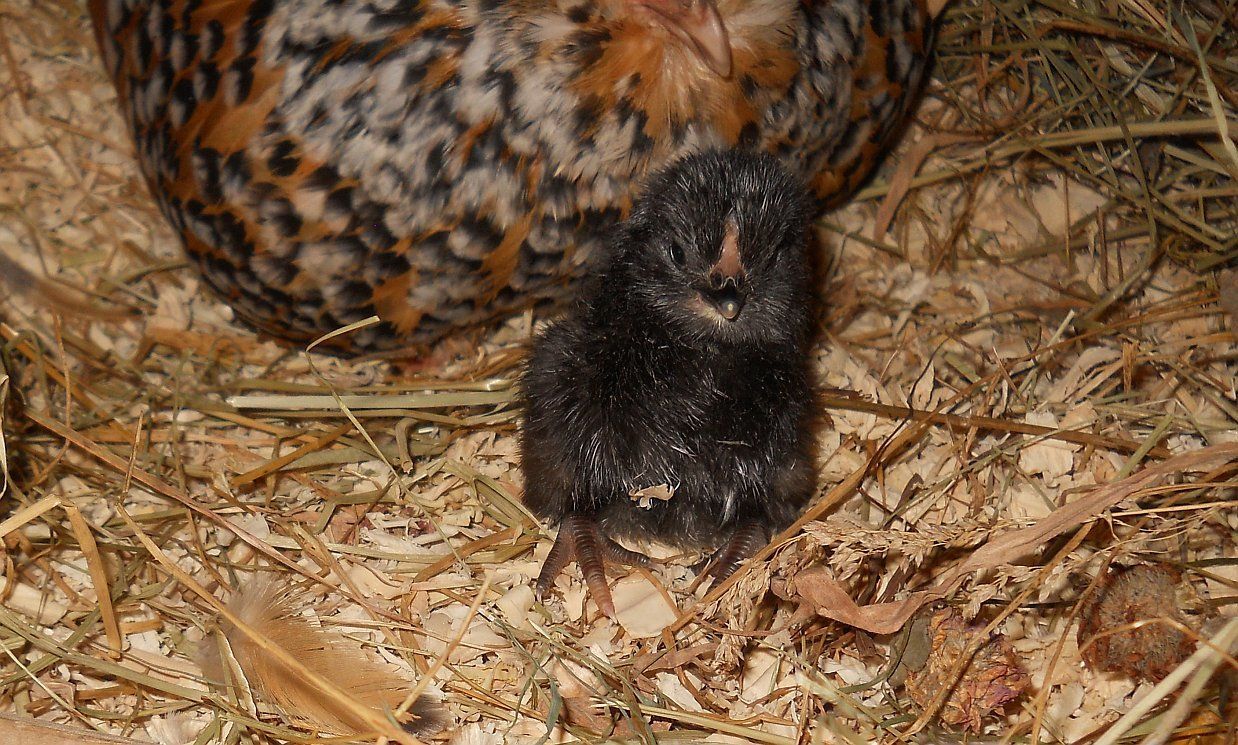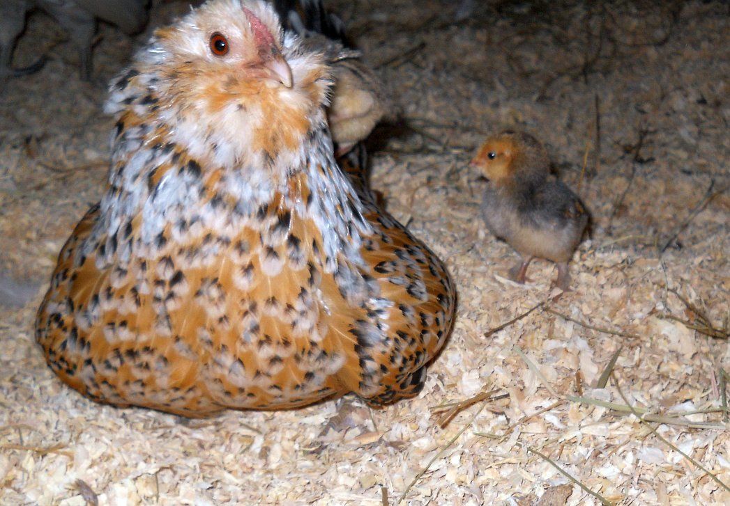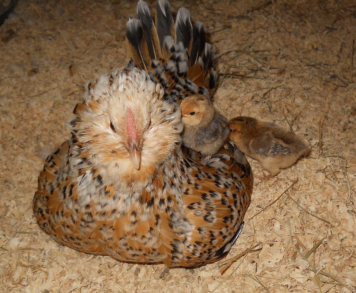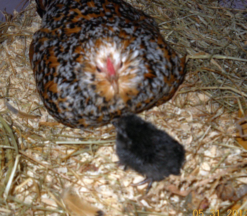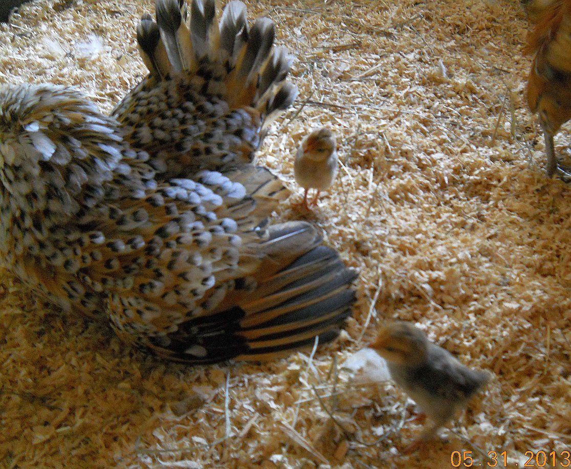 Smokey calmly watching over the chicks, unless they get too active-- then he turns his back to face away from them!