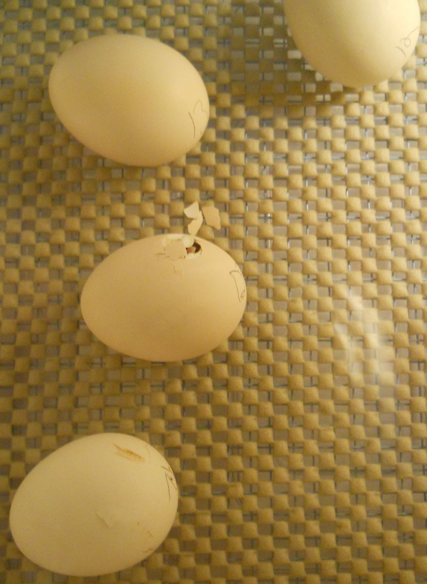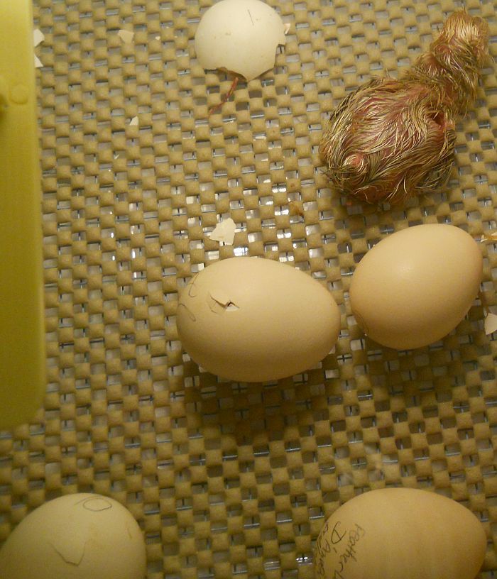 ETA: I removed 3 eggs. They had quit at various stages. There is the one pipped, five chicks in the brooder (the first one, I think has a twisted hock) and five others unpipped in the Genesis. I candled one or two of those that had movement, but from experience, that doesn't mean they will necessarily pip or hatch. Have to get to bed right now. Hopefully, Karen, there will be at least 5-6 chicks, not what I expected and no reason for it other than the time of year and the fact that six of my twelve layers were first year pullets. That never is a problem with my LF birds, but who knows with these, especially at this time of year? Anyway, I'm hoping at least one or two of the unpipped ones will show up tomorrow, which is Day 21.