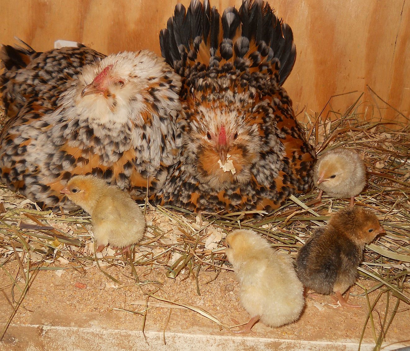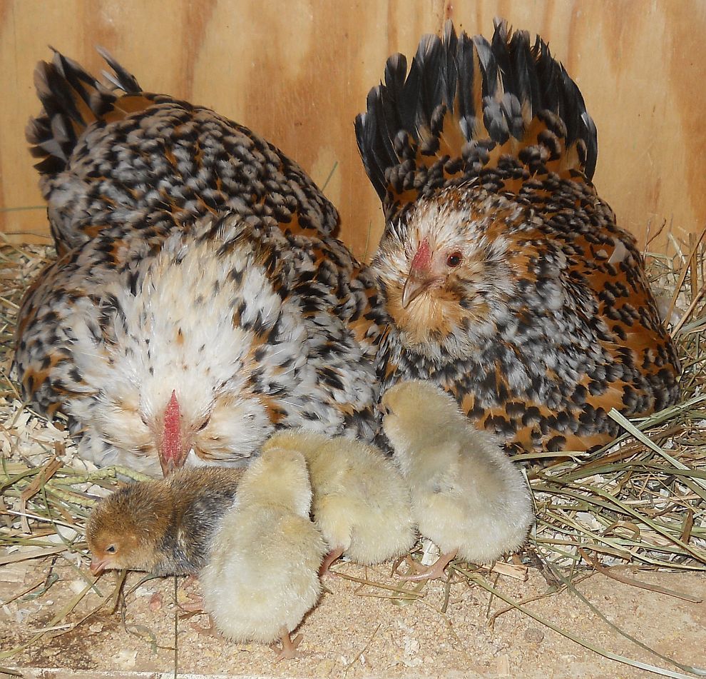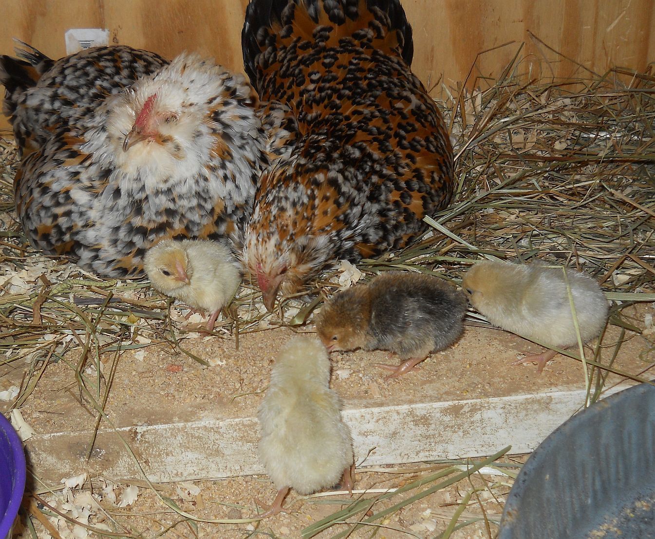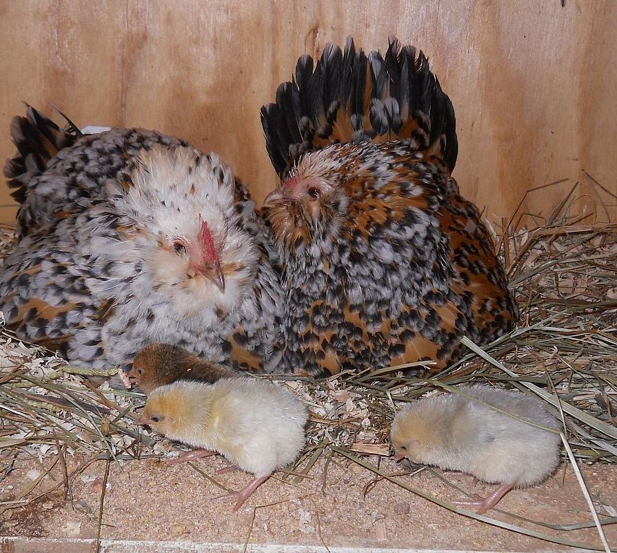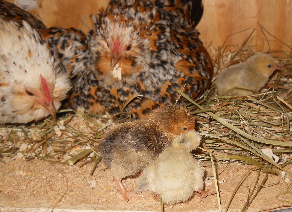 You mean those hens are flogging you? Have they lost it completely? Mine are not usually like that, but those two were raised in a chaotic group, which seems to make a difference in some of them.So all the Broodie's are of their nest with chicks. Well except me because I kept the incubator going because I knew there would be late eggs because they all kept stealing eggs. Hens have 24 chicks and I have about ten in the brooder. The Devil... Oops I mean D'Anver girls have 5. 1 LF EE who is rusty brown in color. 1 Black who I think is from my Seabright who liked their nest box. 3 Porcelain. ???What's up with that? All Three have clean legs so I don't think they are d'Uccle. guess we will see as they grow. I do have a Milli in the brooder. I would post pics, but they have earned the devil name. They both flog me when I open the coop door to give them food and water. If the were bigger than gnats I would have a problem. Rusty even got me this am... Crazy birds!