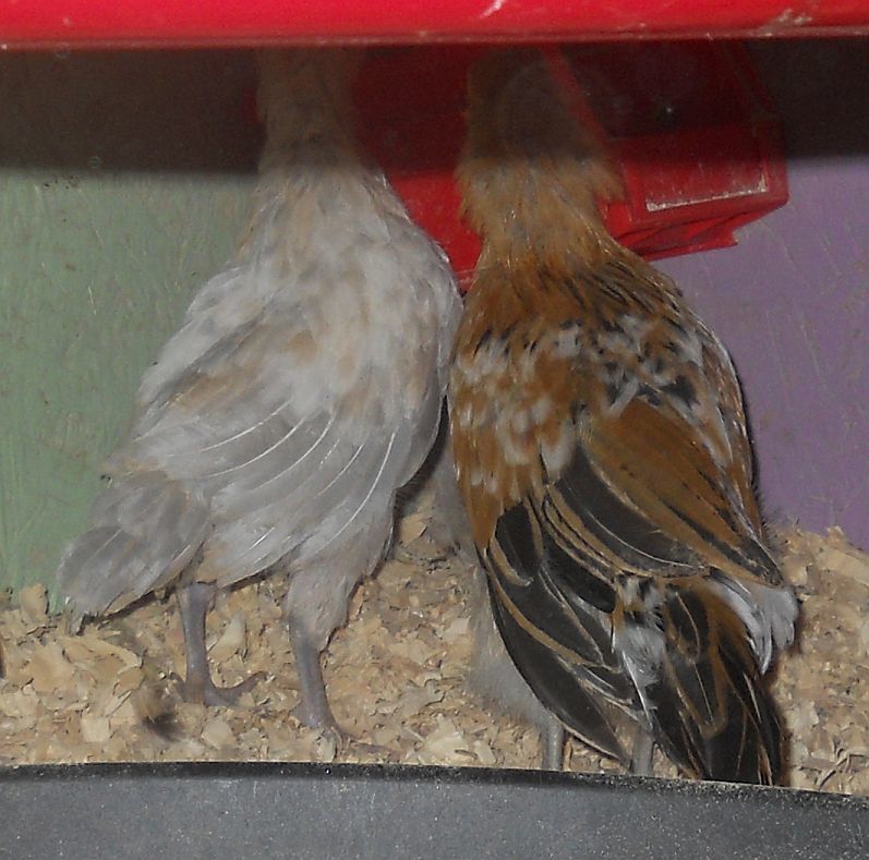 D'anver males make fabulous fathers. Spike is wonderful with babies. He does become a little flustered when large fowl chicks begin to bypass him in size by about 8-9 weeks old, though. With the last batch, I think he decided he was living in a land of giants, LOL. When he's unsettled, he runs around making this Olive Oyl "wringing her hands" sound, which is hysterical,