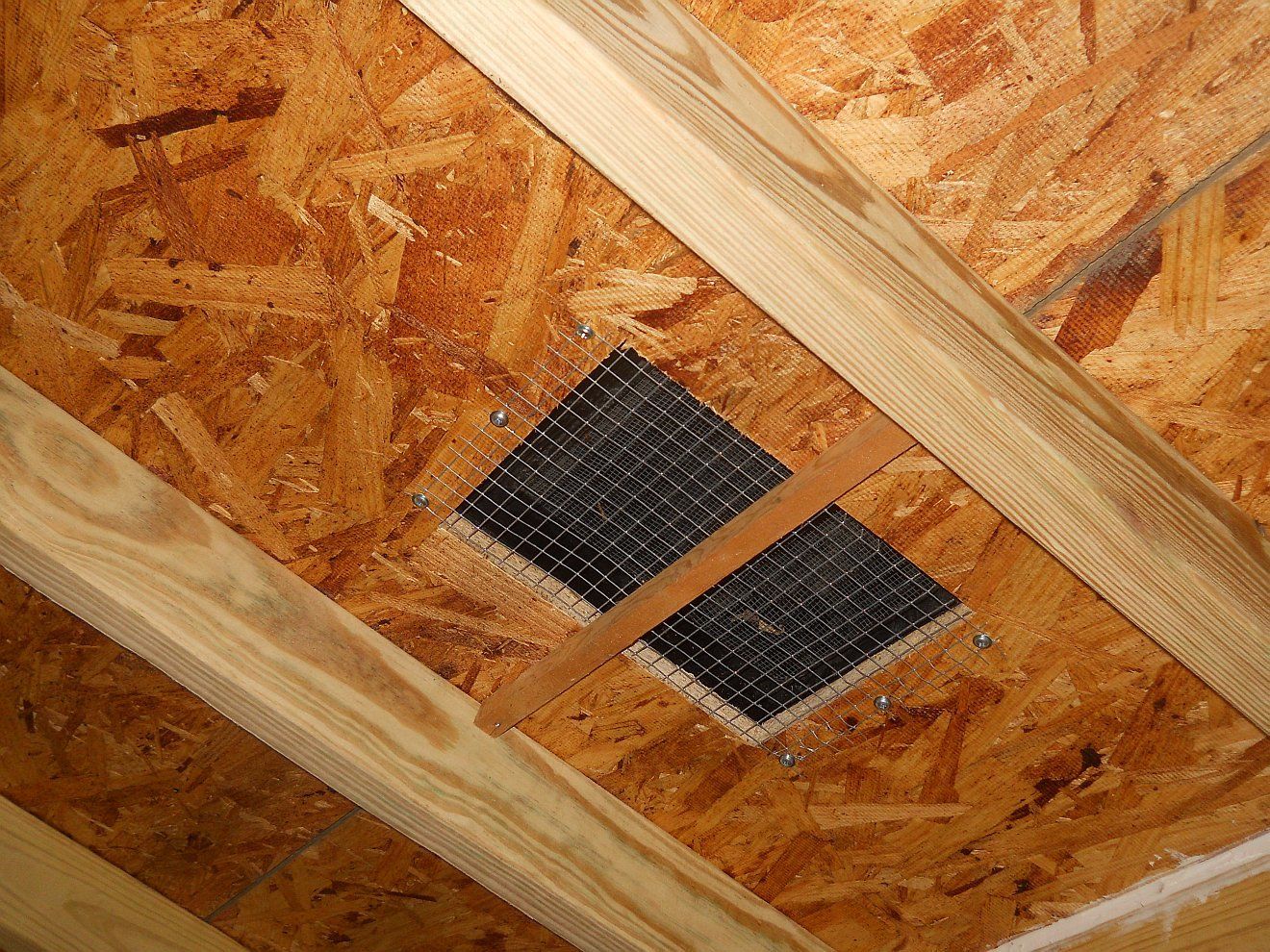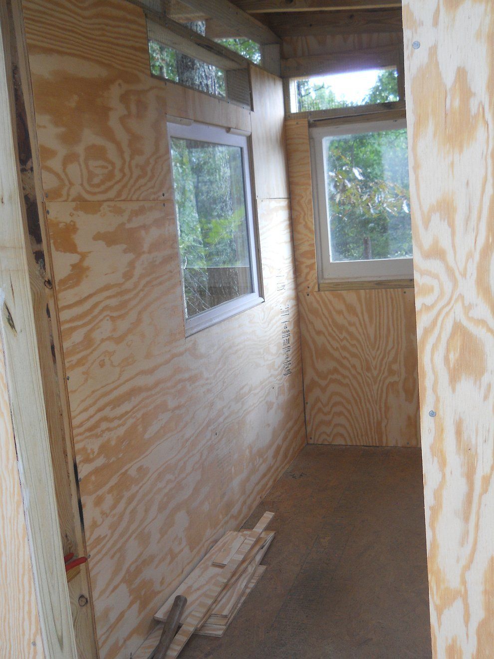 Note the redneck insulation, aka Walmart plastic bags, various types of bubblewrap and painters sheeting all stuffed in cracks and crevices. DH has been caulking today as well. Hardware cloth over all vents, plus on ceiling where we cut in to put the turtleback vent on the roof.