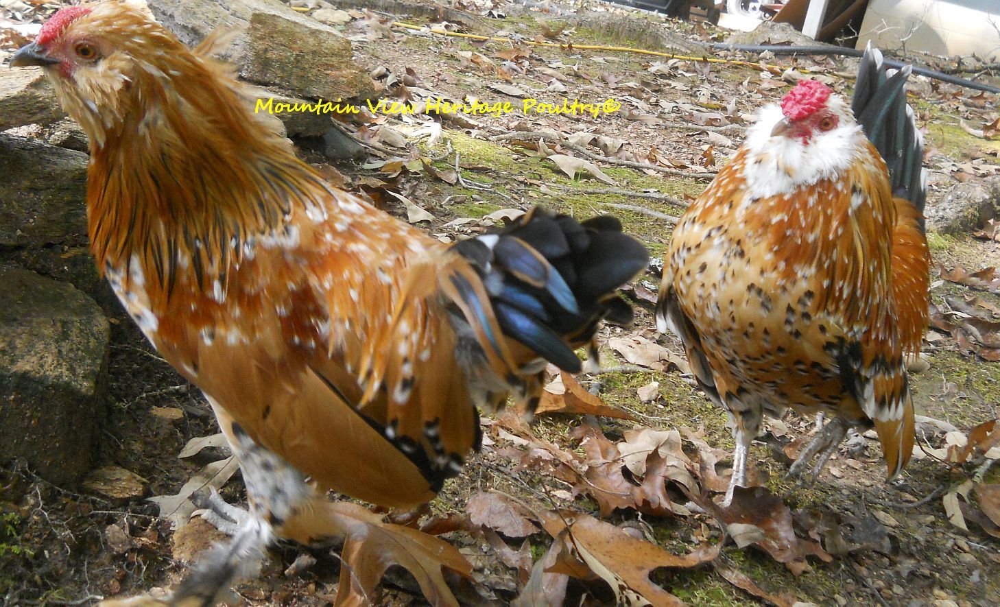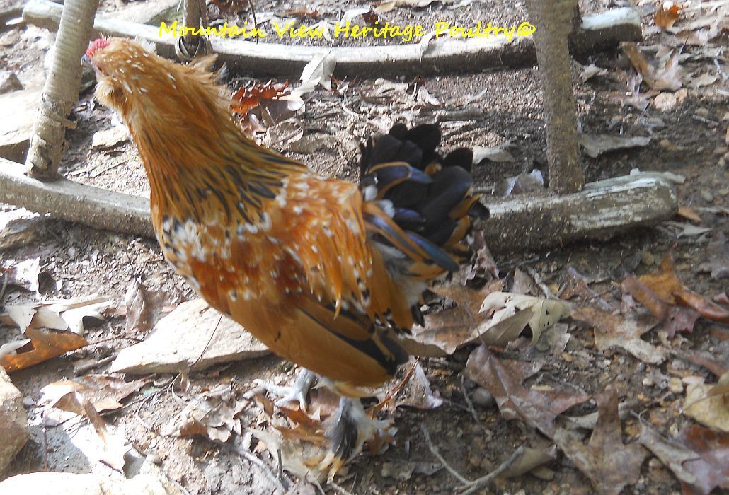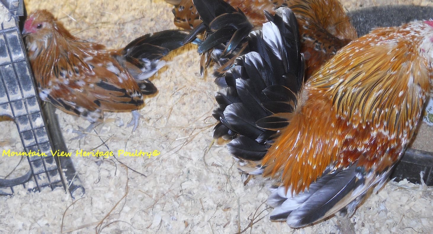 My sweet Spike has really changed. He is attacking, actually flogging, my 13 week old Barred Rock pullet raised in the bantam coop. He normally is a great father, and still is, with his "own kind" but he hates the large fowl youngsters now. He's fine with the three 15 week old cockerels in that pen.