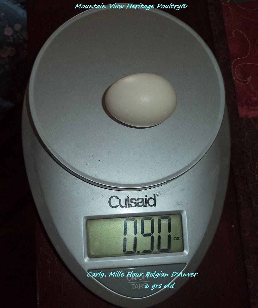 Got another D'Anver egg, covered in blood, from tiny 6 yr old Carly. Guess she had not laid in so darn long, it was not an easy stretch! She's only about 17 oz in weight and lays super tiny eggs, but still pretty wide for her teensy frame, I guess. I can't believe it. No eggs in a year or more from these girls and now, two of the oldest hens are laying.