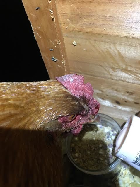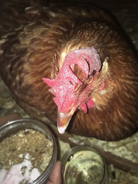 Hello, thank you in advance for any feedback! One of our hens, Dazey, was diagnosed with gastrointestinal infection and was on antibiotics for coccidious. Even though her stool was negative, she had the symptoms.. After nursing her back to health and finishing her antibiotics, we re-introduced her back to the flock. She was doing well, acting normal, very happy to be back home! Her comb was still very dry, but red. At the beginning of her illness, we noticed a single black dot on her comb, and now I am noticing some more, even smaller, dots. But she was still acting normal. Last night my mother gave them some mealworms (one of her favorite treats) and she didn't seem as interested as she normally would be. Not sure what her comb looked like yesterday as I wasn't around, but today it is very dark and droopy. She's eating and drinking normal. Please help!!! I am very worried about my sweet girl!!!