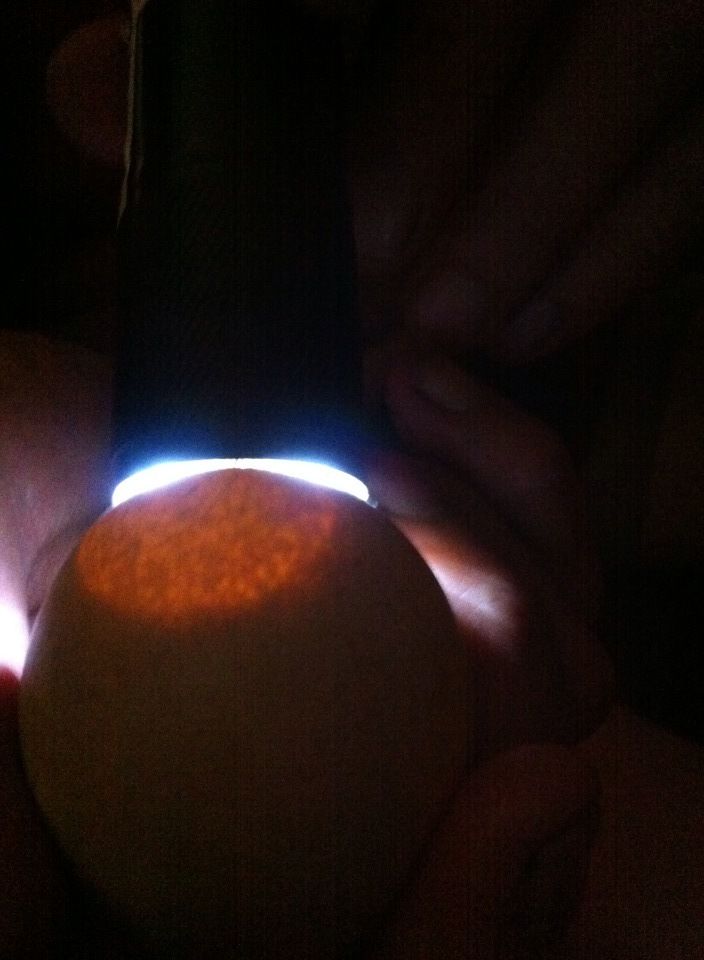 2 of the remaining eggs are so dark when candled I cannot see anything. They might as well be rocks. Some eggs I think 3 are very splotchy - the web says they are porous. The remaining 4 have yolks.