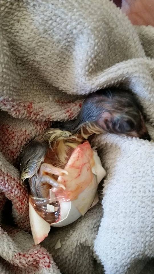 Mar 18, 2015 Thread starter #21 CountryMousette In the Brooder Joined Feb 19, 2015 Messages 31 Reaction score 7 Points 26 #2 is out! Another shrink wrap victim but doing good! Thats a red and white towel, not blood, just so you dont worry. lol