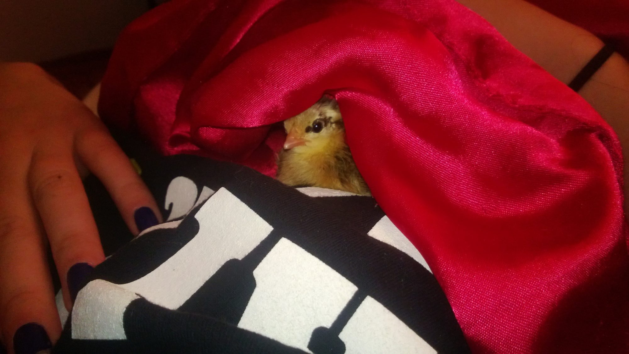 Learned how to drink and eat, and I have a T-shirt in there she likes to cuddle under when she's in need of a mother =]]