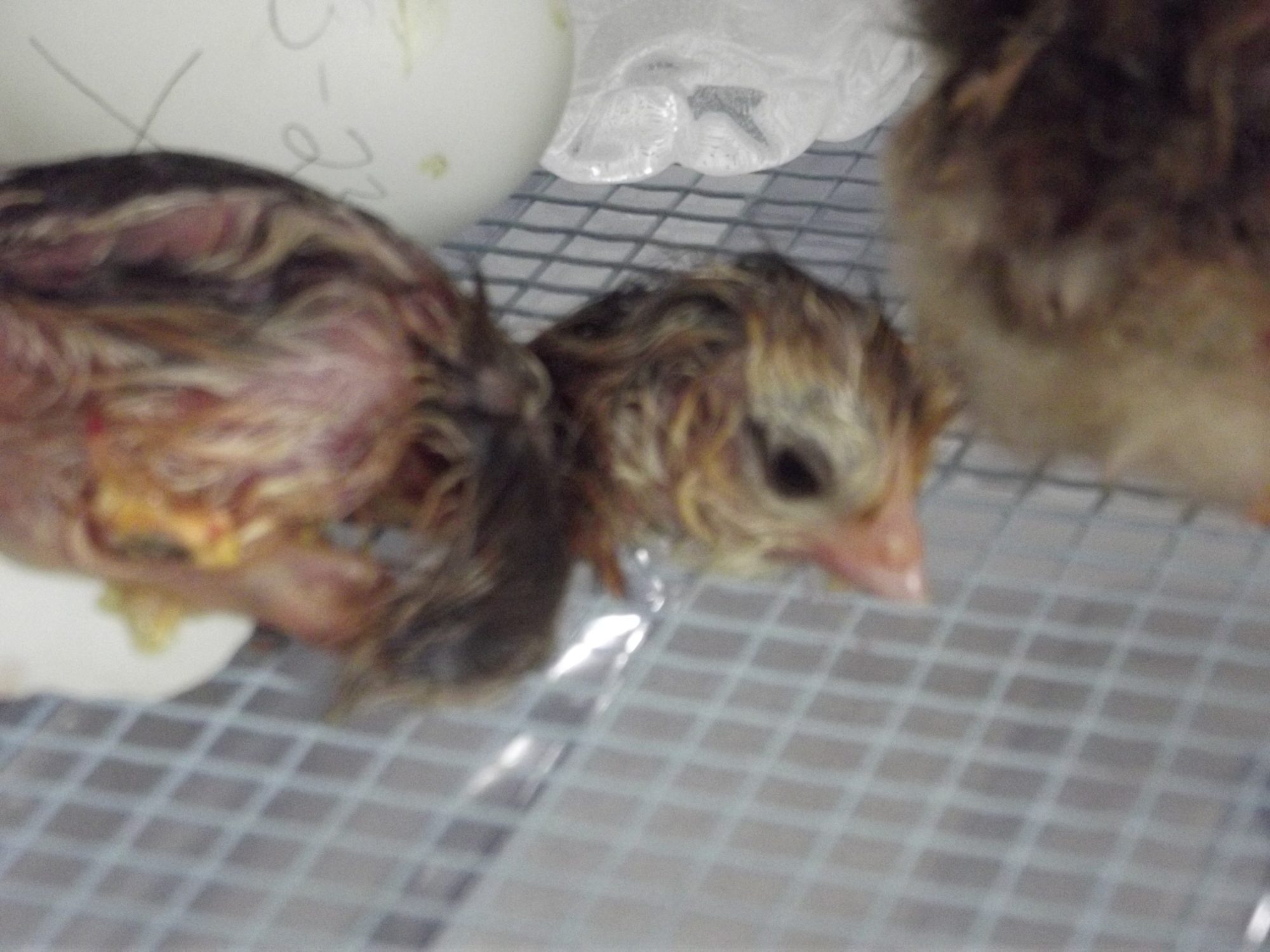 Well the first one is Lucky and Mo is trying to get out now :) Actually my incubator was at 100F for the longest time till I unplugged it and heard some chirping. Then I was looking at the notes my friend had made for me and it said during the hatch put the temp at 95F. Its alright that its a few days late. I took Lucky's shell out and noticed the egg it was attached to has a pip hole. So if all goes well I'll have 5 chicks out of 15 that I thought were all duds!!!