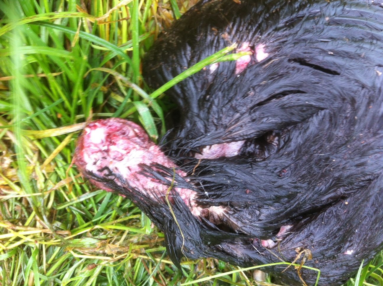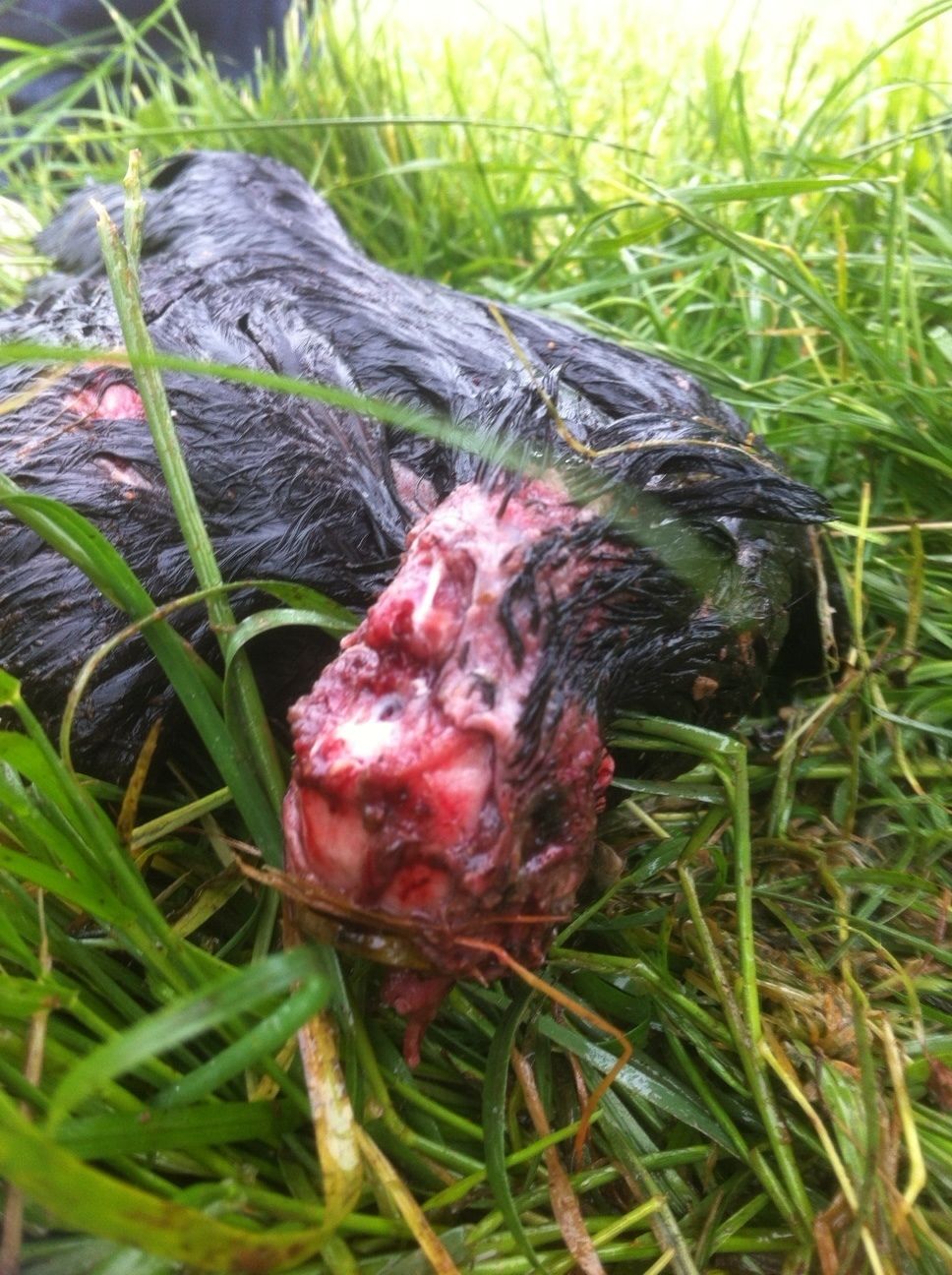 I've attached the pictures of the dead hen. Sorry, but it's a lot better than trying to describe the injuries.