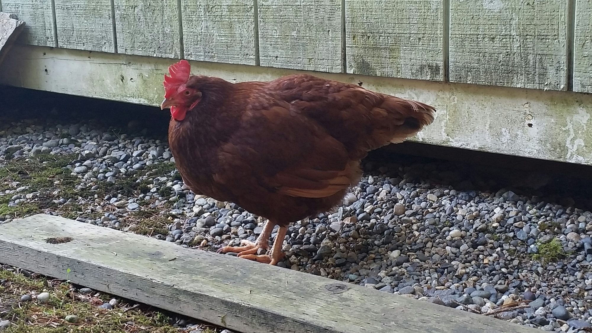 There is lots of activity outside today and she follows us everywhere. The others were outside for a bit and Cadury put the run on Buffy. This time she flew up high away from her attacker. She was quite nervous after that and her poo is pretty runny today which is a switch from the last week or so. My husband was in with the 6 week old chicks and decided to let Buffy inside with them. It was funny to watch the little ones investigate and Buffy show a little bossiness. It was only for a couple of minutes but maybe it will help her ego. At this point we felt it couldn't hurt. We are supposed to get a storm and some rain in the next day or two so not sure where Buffy will be. Cooped up in the dog crate all day is not an option and the garage unattended worries me. That big question... Is she sick or not??