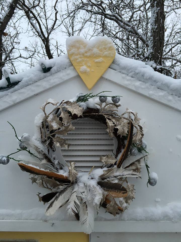 With Christmas coming closer I wonder how many other chicken-lovers have decorated their Hen Houses with lights or other ornaments? I've put lights up, as we crazies do, and made a special Christmas wreath above the door with some of the feathers from my moulting hens. The lights are on a timer so they don't shine all night and keep the dear hennies from their sleep.