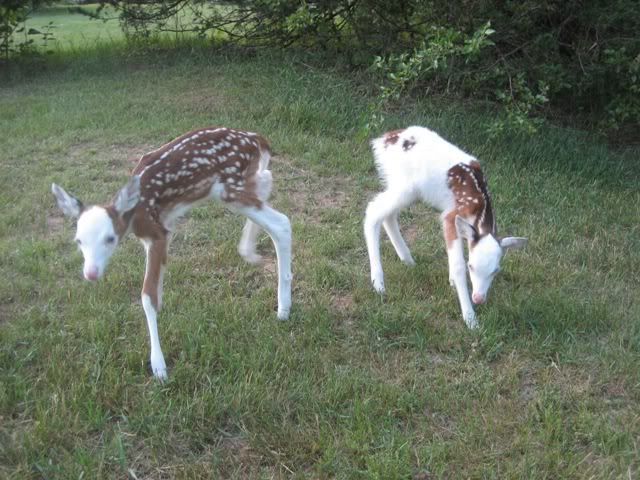 piebalds are so cute!! The one on the left looks just like a little buck fawn someone was selling on craigslist near us! There's actually a wild (supposedly) piebald roaming around near a couple of my coworkers homes. I think I recall having seen a wild piebald once before as well.