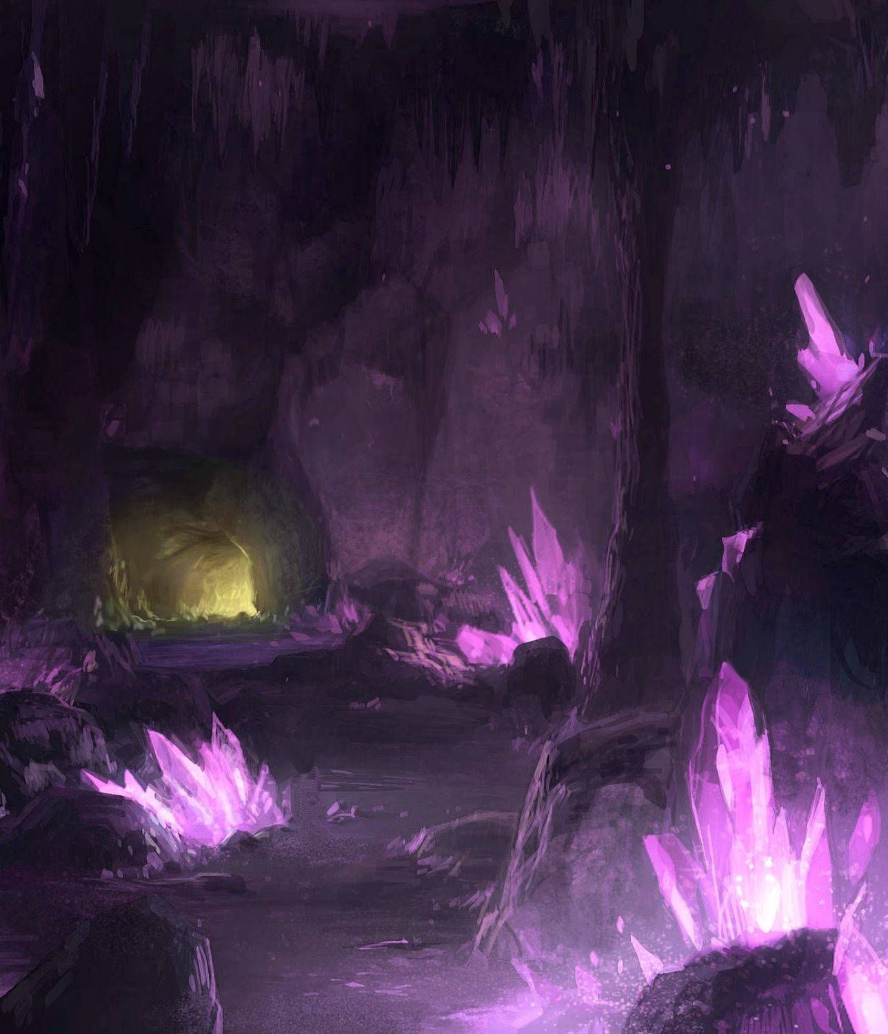 " I know it is " said Nicky, " But it is kind of cool, I have never been inside a cave before and look at all the cool rocks and stuff ." Then Nicky found a rock he thought was just the prettiest rock he had ever seen so he decided to take it with him ( it was actually a piece of purple crystal ).