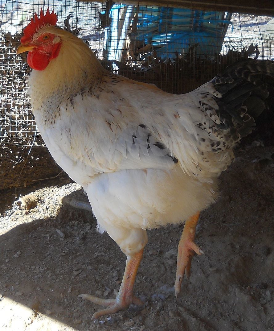 Sorry, that is not correct -the Delaware came as a surprise "sport" from a Barred Rock rooster over a New Hampshire hen back in the 40's. The white bird was then propagated and we got our Delaware, which then became almost extinct when the Cornish X became the new preferred meat bird. The first American chicken breed was the Dominique.The standard of Perfection narrows the large fowl breed by where it originated from (there are two exceptions to this rule). The Delaware come from America from the Java chicken. All or most American breeds have yellow legs and yellow skin. It's obvious that there's something else in your pullet here but it's unclear what. They often do crossbreds to create a better production rate.