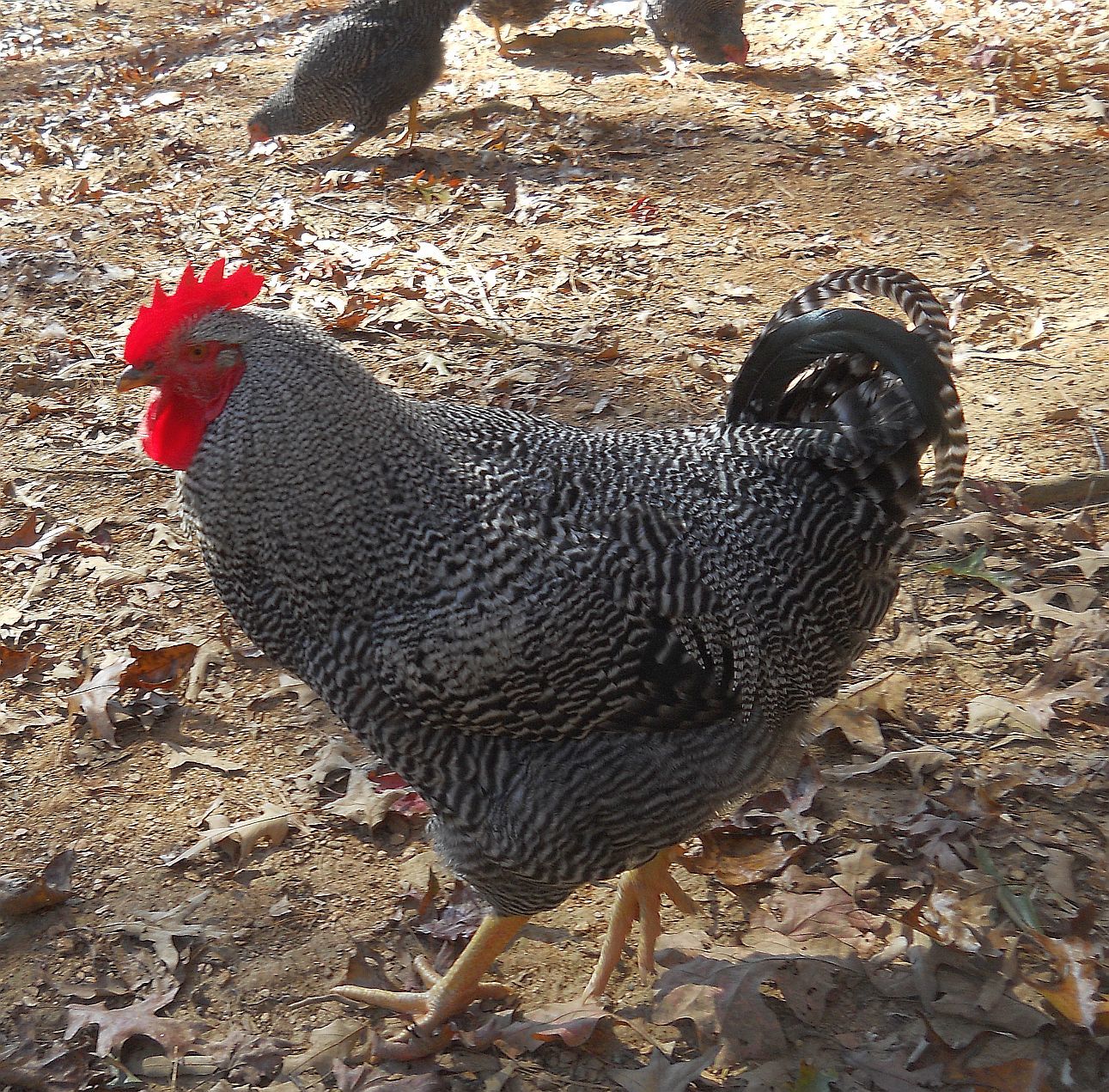 I can tell you that Indy and Rex are more filled out at their age than Rex, the Stukel male I had, was. He was still filling out after he went to live with Scott. I agree that the Delawares beat this line of Rocks in laying ability. Now, my hatchery descended Rocks are slightly better layers than the old line ones. But, I've had them for almost 8 years whereas I've only had the old line Rocks for about 3 years, so hard to compare over the long haul. My 7 year old BR hens are currently laying, though in spurts and about 3-4 eggs per week at their advance age. Not too shabby for old ladies, eh?