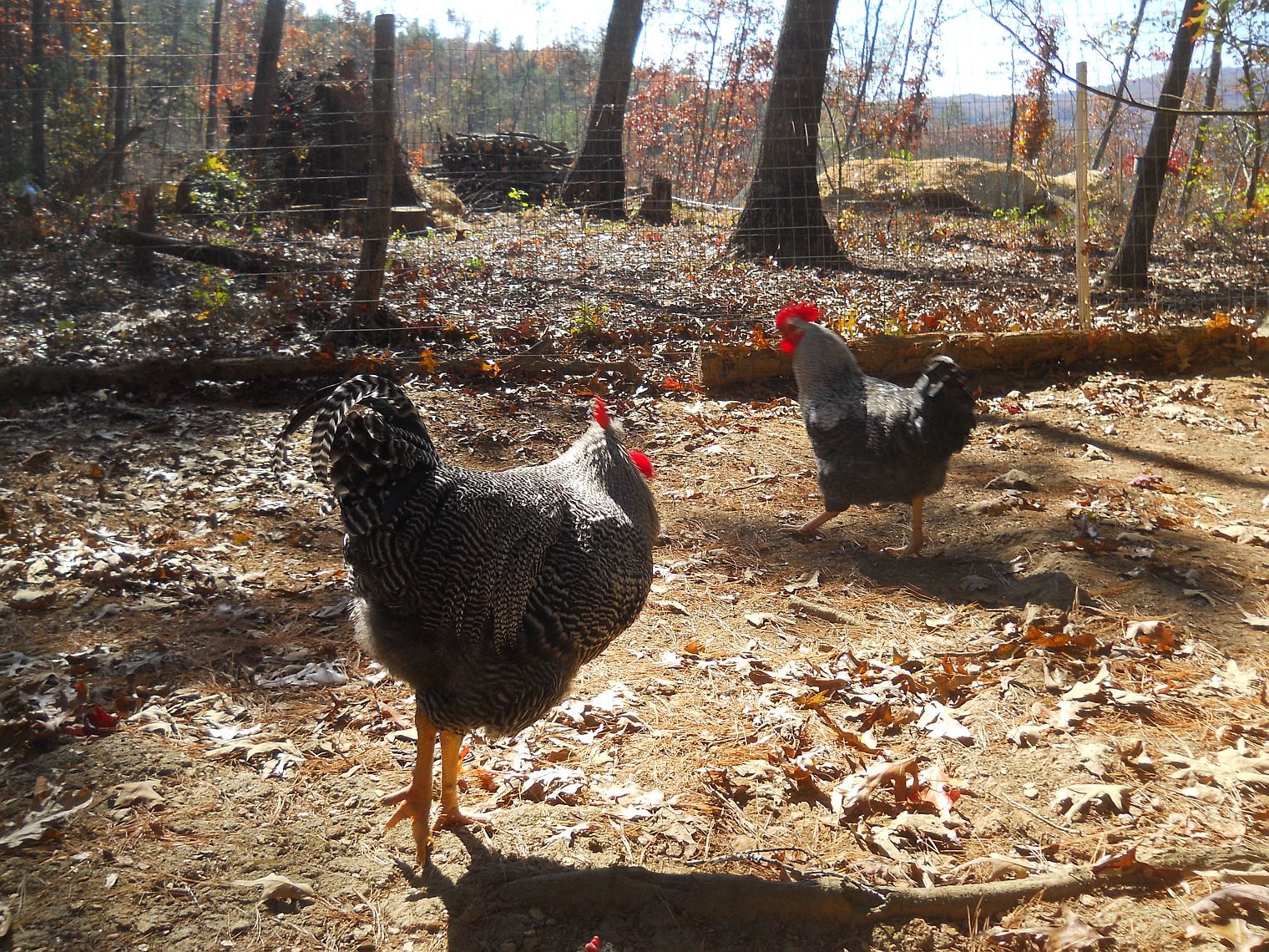 George has always been taller than Nick, and the BR roo I had was a good size. Though all the BR's were impressive to visitors. How do they feel meat wise. My Dels are not so good but the BR's are. As layers the Dels are my best, the BR's not as good as I'd like. A cross might just be what they need.